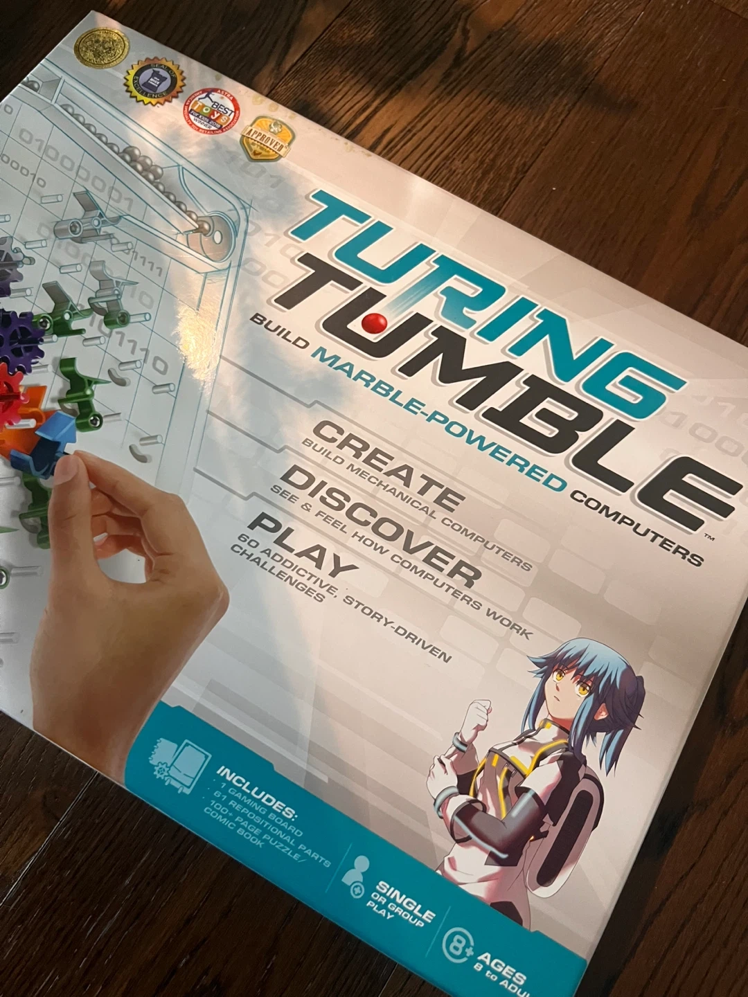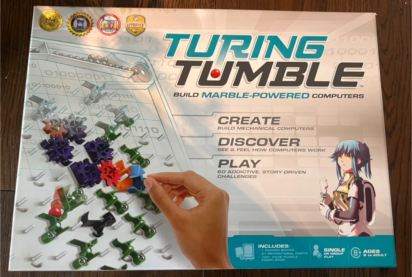 Turing Tumble is a new type of game where players (ages 8 to adult) build mechanical computers powered by marbles to solve logic puzzles. Use ramps, crossovers, bits, interceptors, gears, and gear bits to build marble-powered computers that can generate patterns, do logic, count, add, subtract, multiply, divide, and much, much more. Discover how computers work! Voted best toy of the year! Going for $50-$100 used on marketplace.