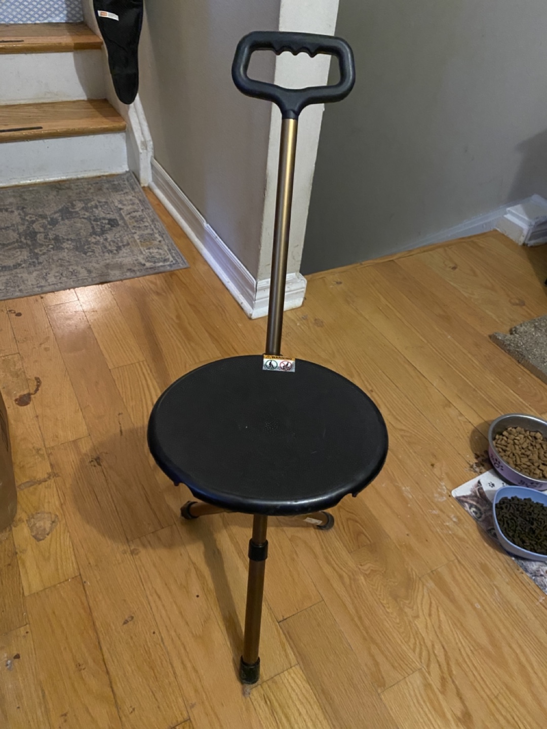 Portable folding cane with a built-in seat. Lightweight and easy to carry. Great for seniors or those with mobility issues. Good condition.