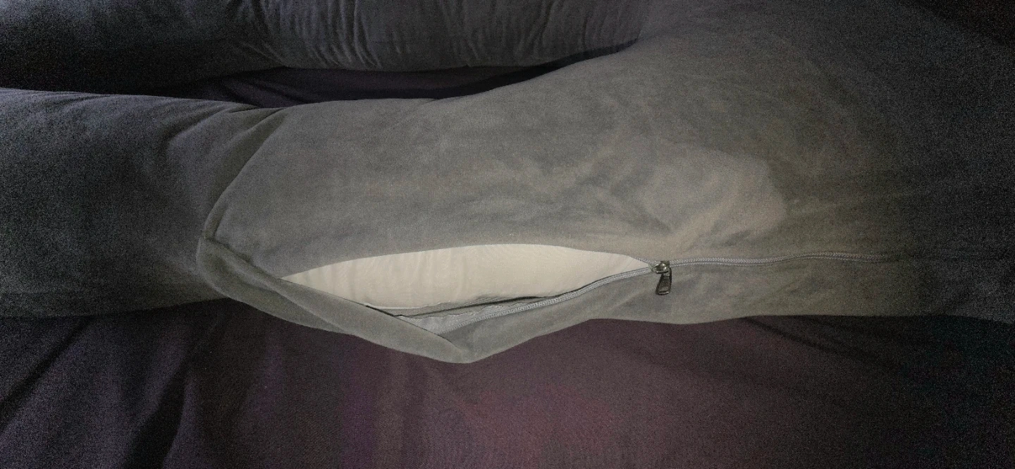 U-shaped Maternity Pillow Support for Back, HIPS, Legs for Pregnant Women, with Washable Velvet Cover (Grey). It's made with a soft, grey velour cover and a zippered closure for easy washing.