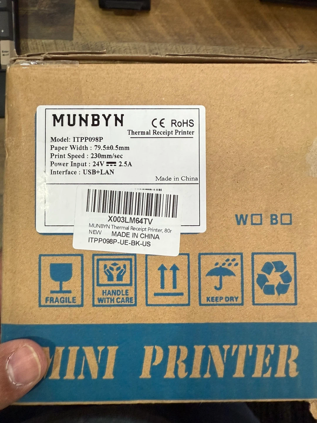 Selling a brand new MUNBYN Thermal Receipt Printer, model ITPP098P. It comes in its original box.