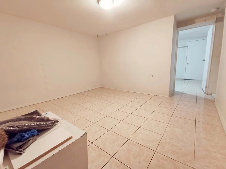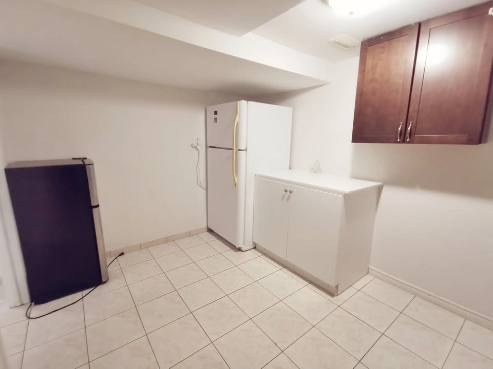 2 linked bedrooms basement apartment with 1 bathroom and a private kitchen. No living room. Separate entrance with storm room. Ideal for a small family, a couple, or 1-2 working professionals. Rent is $1500. Utilities are separate. Available for immediate move-in. Shared laundry room.