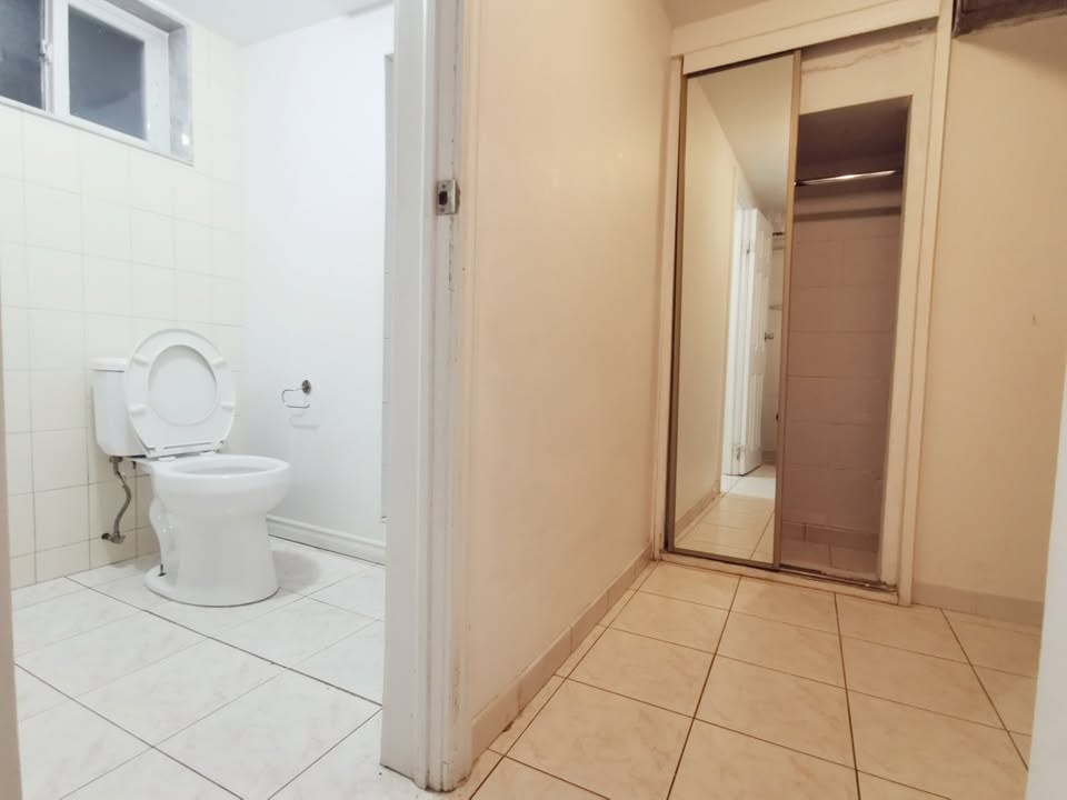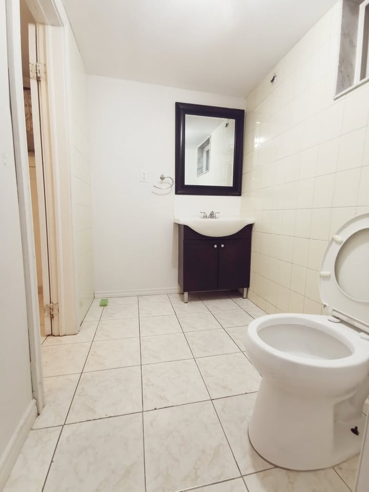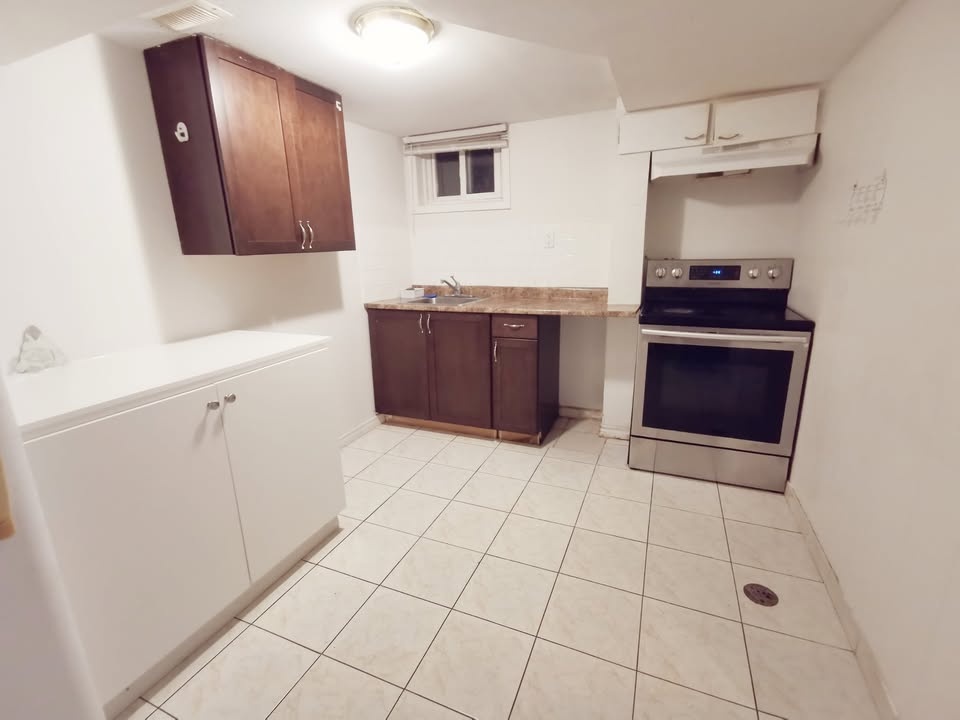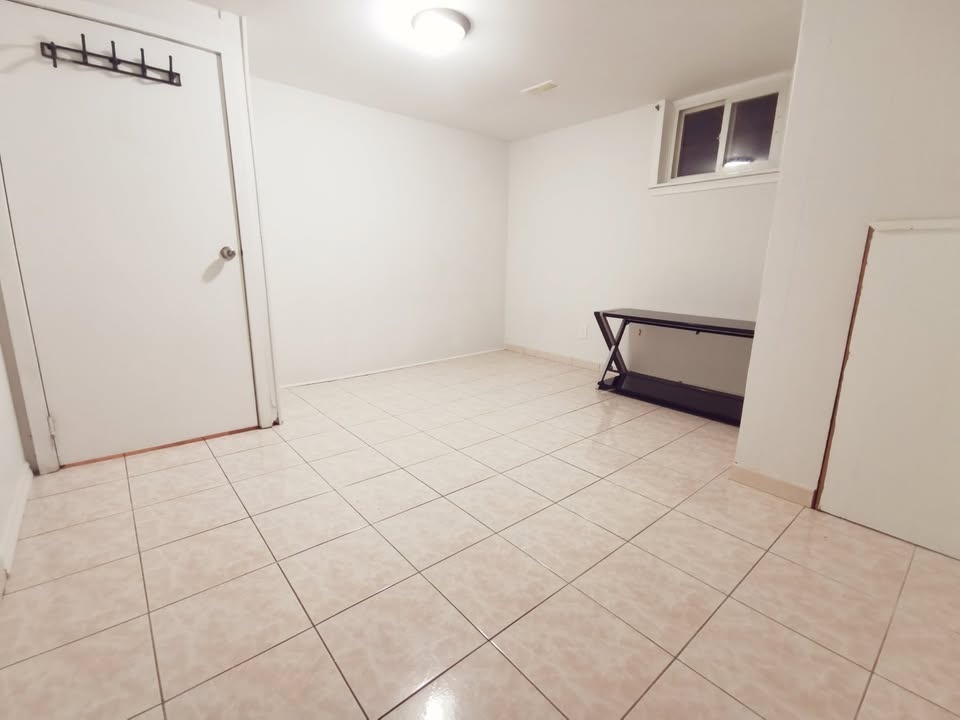 2 linked bedrooms basement apartment with 1 bathroom and a private kitchen. No living room. Separate entrance with storm room. Ideal for a small family, a couple, or 1-2 working professionals. Rent is $1500. Utilities are separate. Available for immediate move-in. Shared laundry room.
