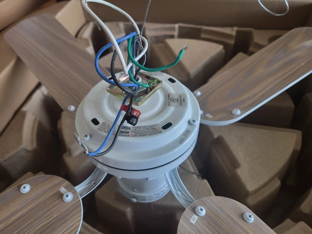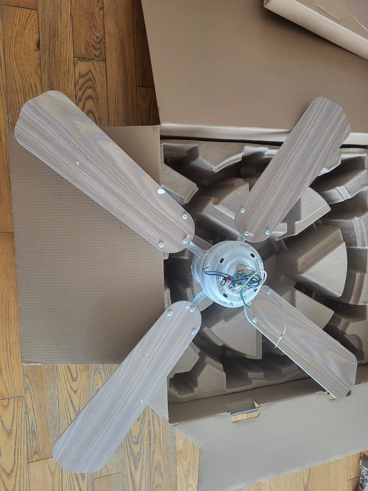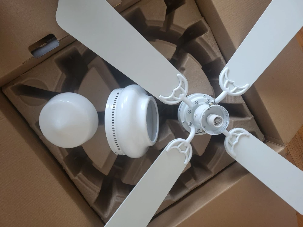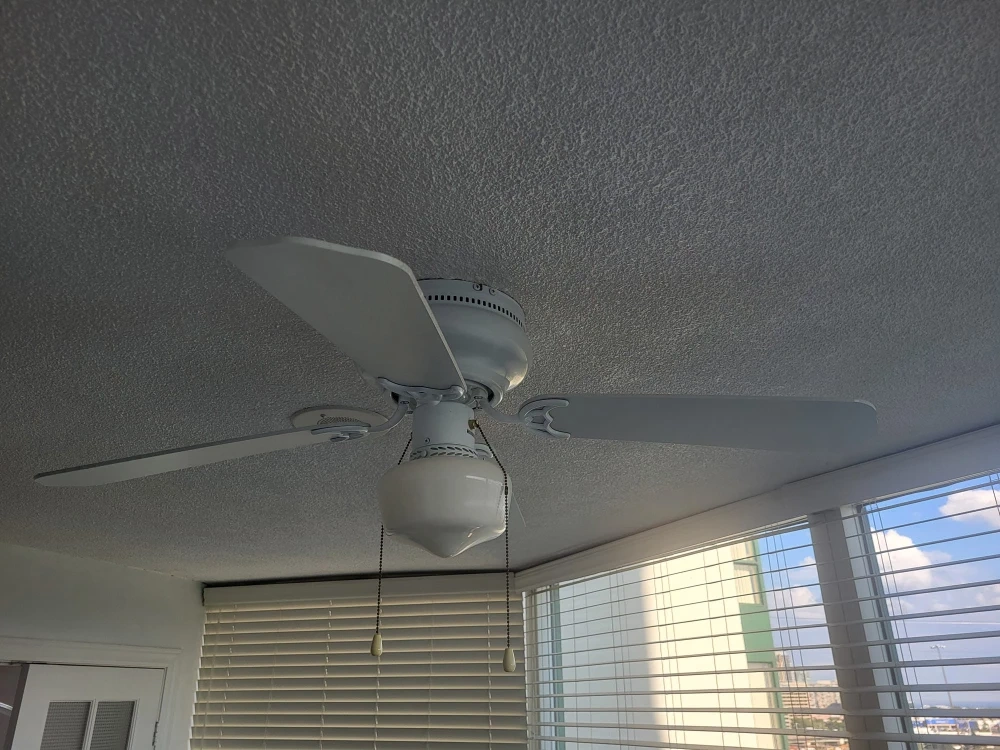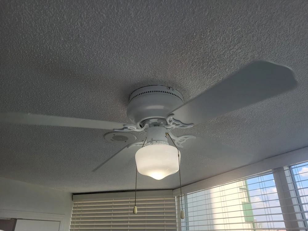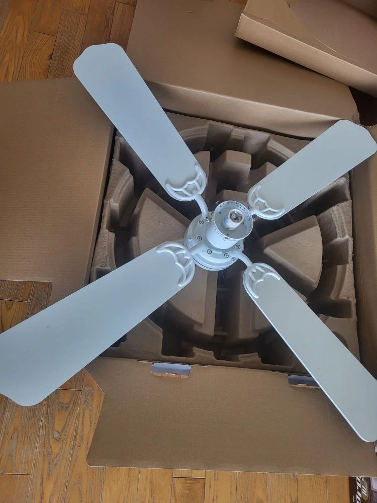 Ceiling 3speed fan in very good condition with light in the center.4 blades reversible white and wood light brown color.