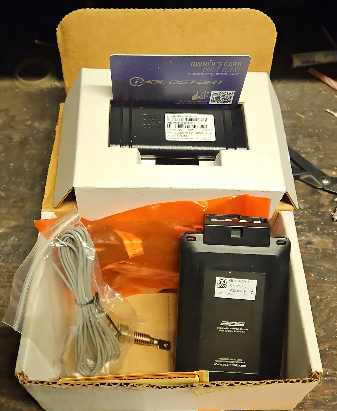 This iDatastart ADS VS-4LU is a remote car starter module. It was manufactured on June 19, 2022. The module is designed in Montreal, Canada, and made in China.