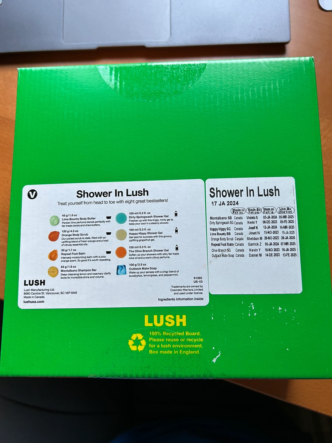 This is a new, unused gift set from Lush. It includes eight shower and body products.