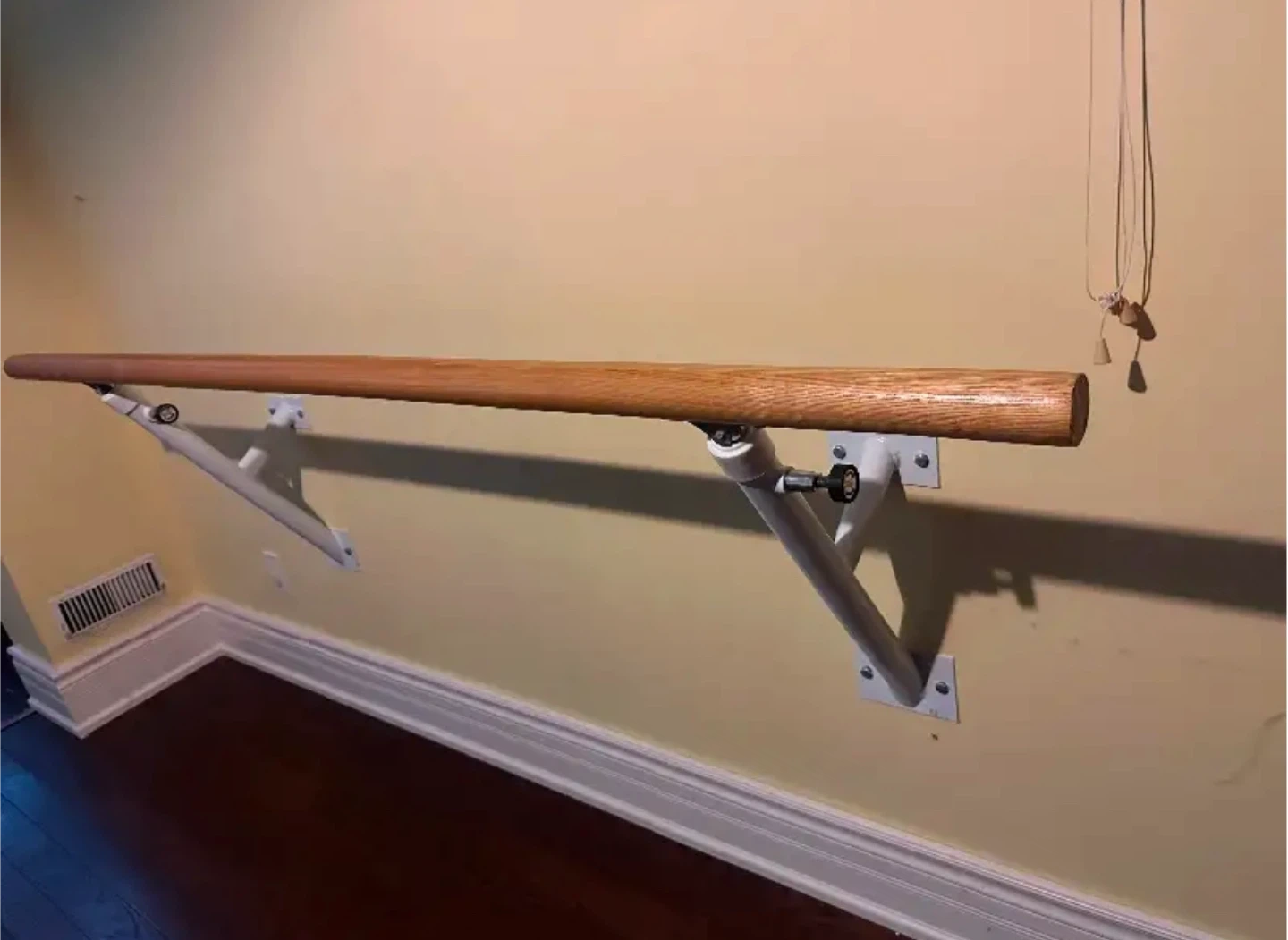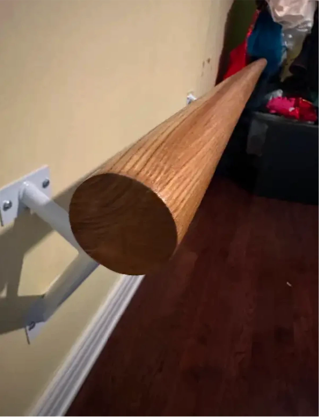 Selling a wall-mounted ballet barre. It's perfect for home practice and easy to install. The barre is made of wood, and the brackets are white. all mounting metal accessories included. Solid maple wood. 78” long.(6.6 feet)