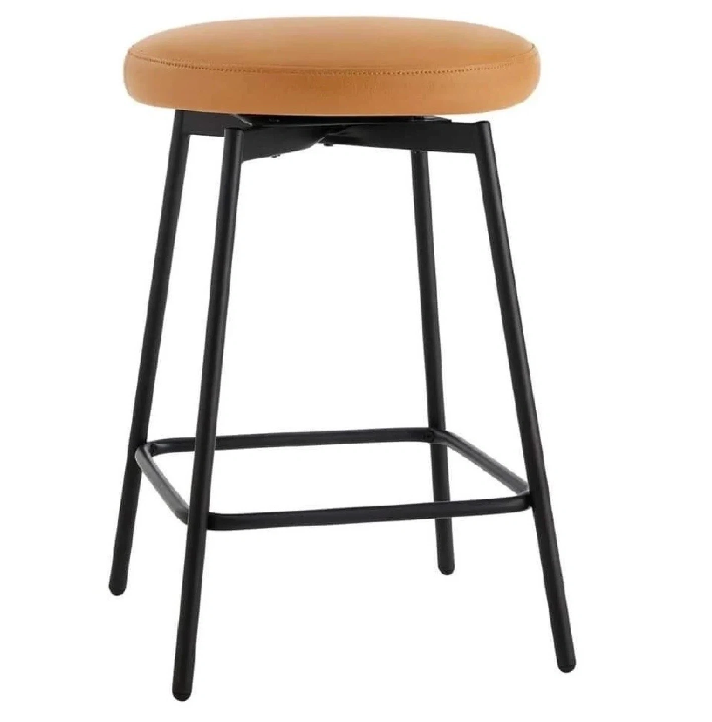 This set of three 24-inch counter bar stools, still sealed in their original packaging! These stools feature a sleek black metal frame and a comfortable, stylish tan upholstered seat. This set is ideal for adding a modern touch to your kitchen island or bar area.