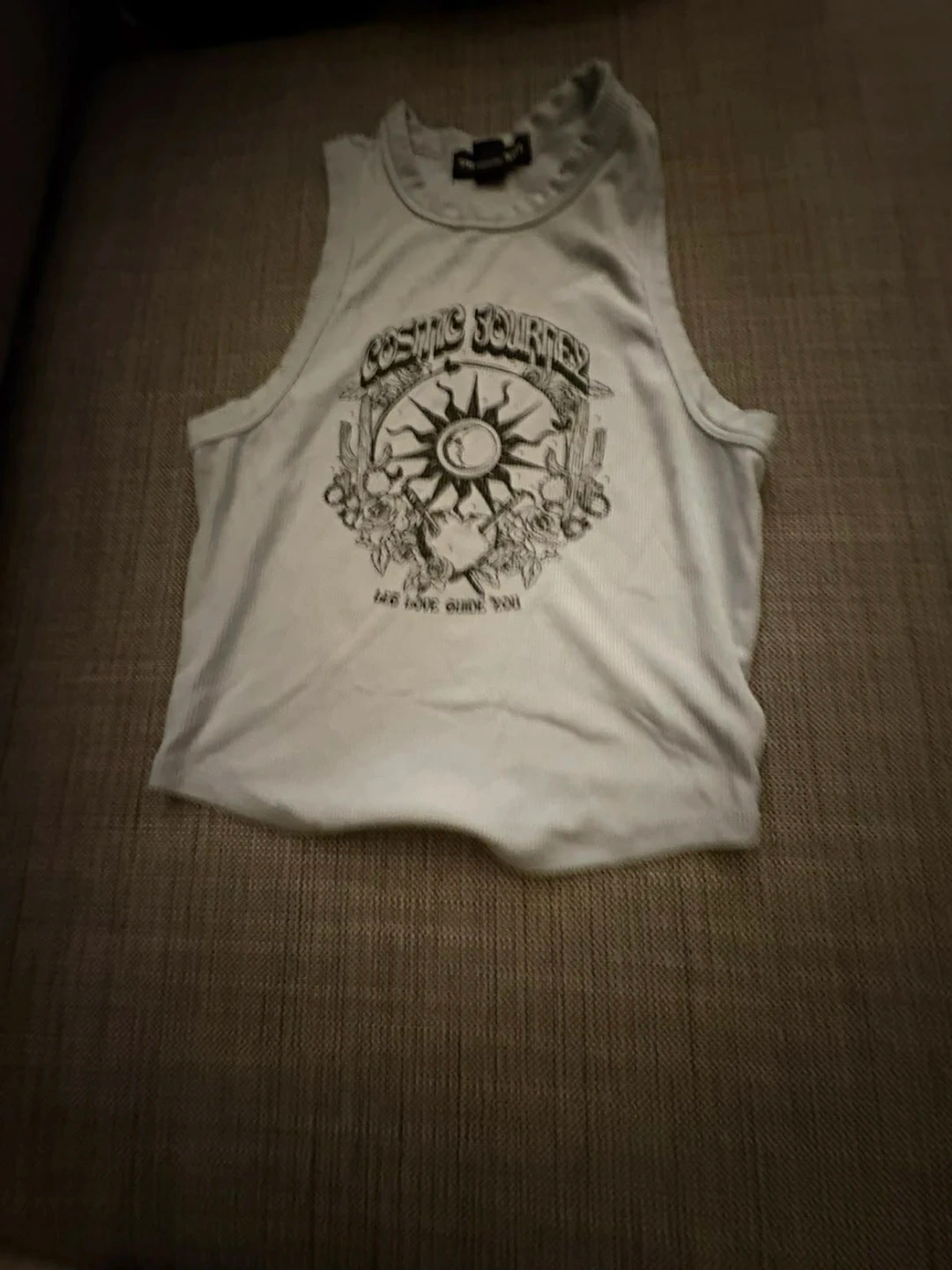 Bundle includes a grey sleeveless tank top with 'Cosmic Journey' graphic, a grey t-shirt, a red t-shirt with 'Is it too late to be good?' text, and pink dolphin shorts with white trim. Perfect for casual wear!