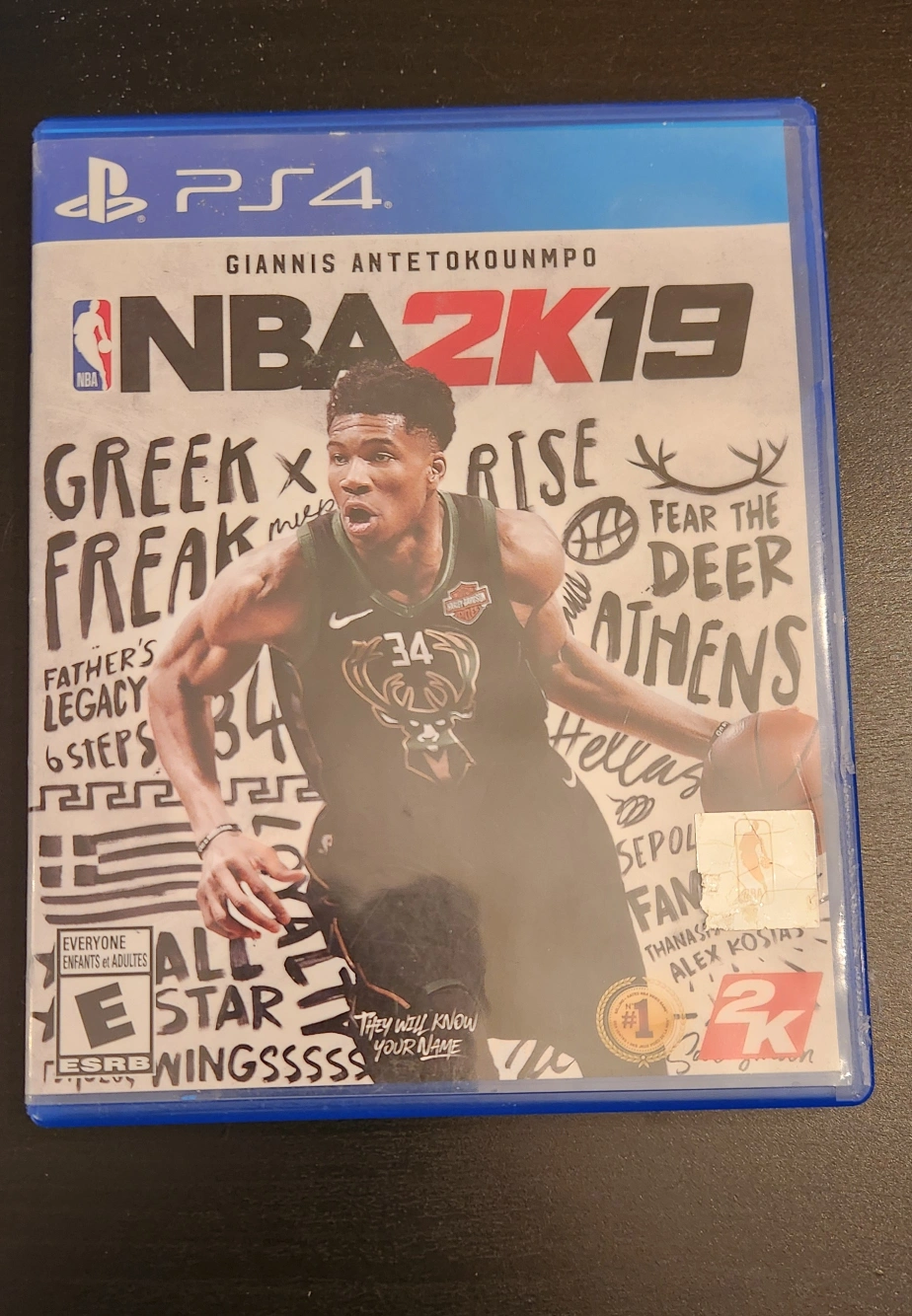 A PS4 game with Giannis Antetokounmpo on the cover. Featuring the NBA 2K19 logo. It's a great way to unwind after a long day.