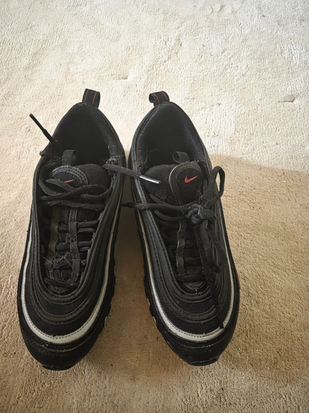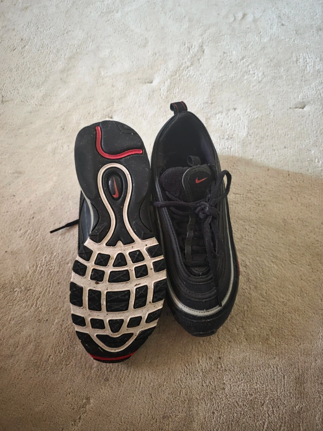 Buy & SellNike Air Max 97 Black Running ShoesNike Air Max 97 Black Running Shoes$135Black Nike Air Max 97 running shoes. Men's US size 7, EUR 39.5. Made in Vietnam. Shows some signs of wear.ConditionLike newBrandNikeWHERE TO MEETCheck LocationView MapSELLERverifiedandyLakeview1186 reviews0 chats·0 favorites·24 viewsSEND CHAT TO SELLERHi andy! I’m interested in your listing.Hi andy! I’m interested in your listing.Get the Karrot app to chatSign In to chat
