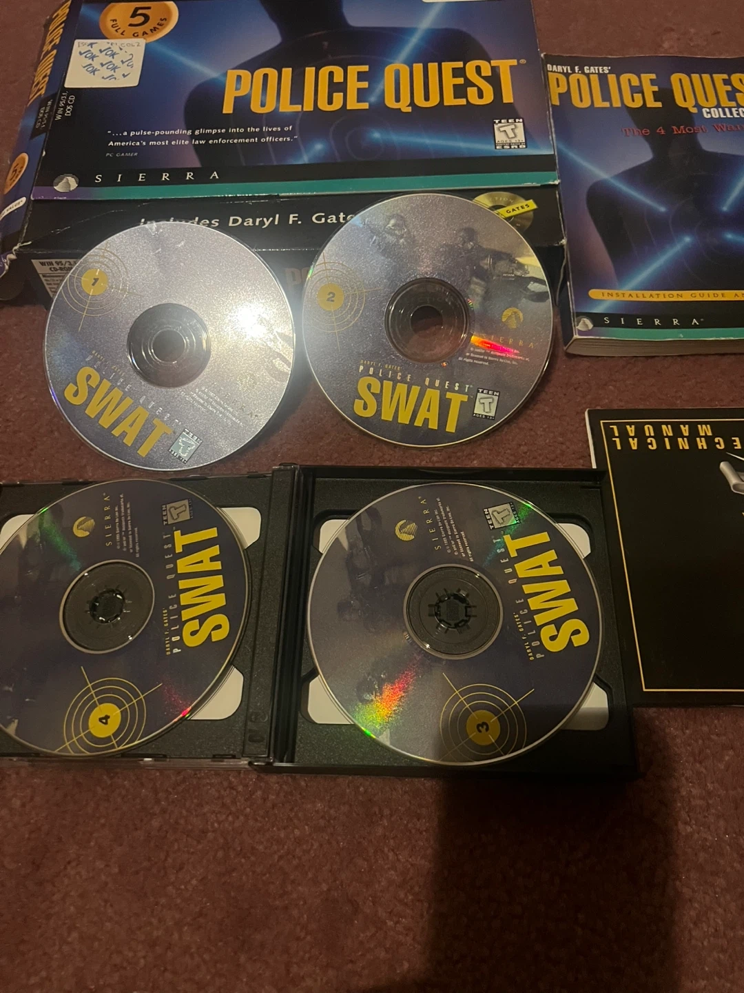 This collection includes the Police Quest Collection and SWAT 4 PC games. The Police Quest Collection box set contains 5 games. Both are collector's series editions. Includes installation guides and technical manuals.