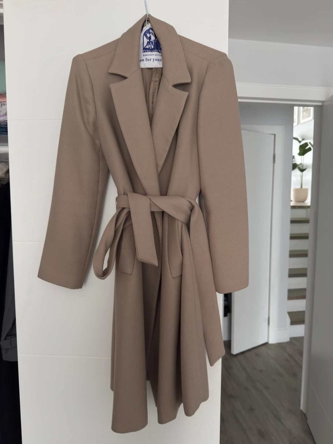 ZARA Tan Belted Wool Blend Coat - Size S