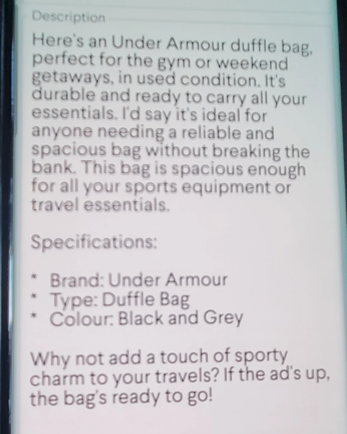 Under Armour Duffle Big Bag New