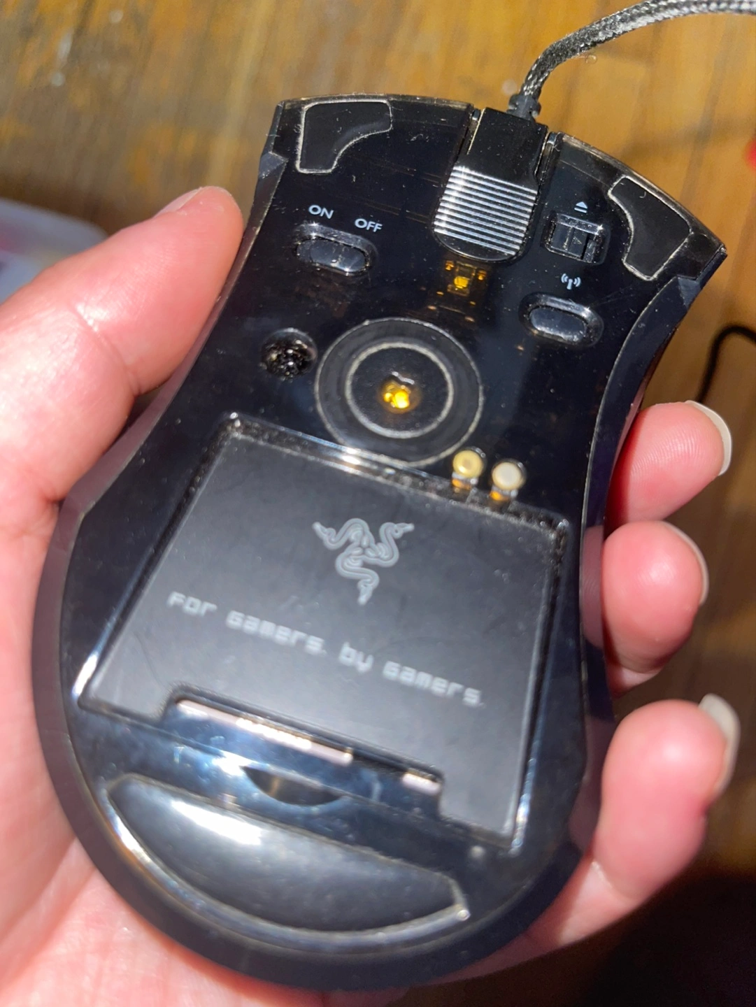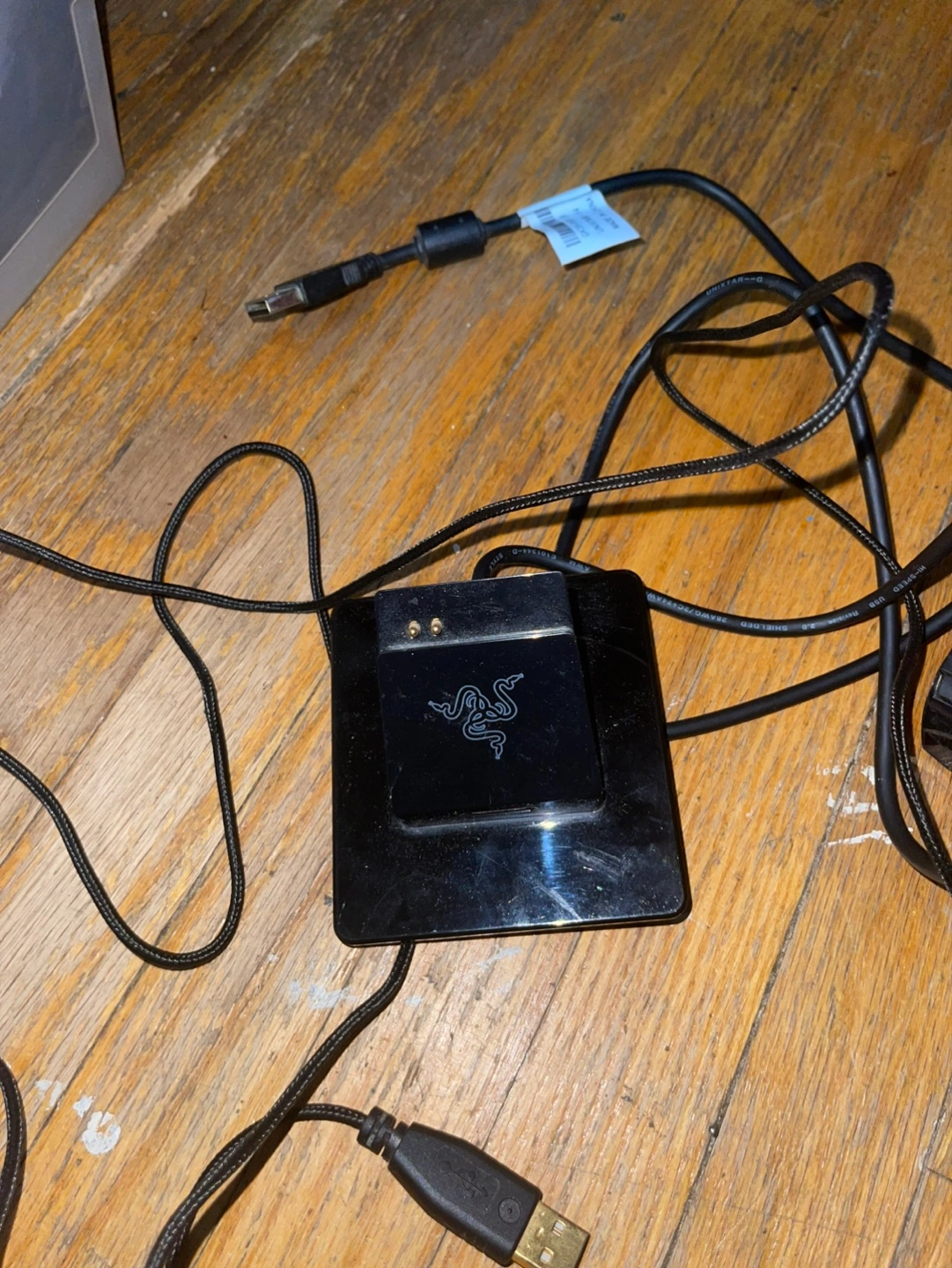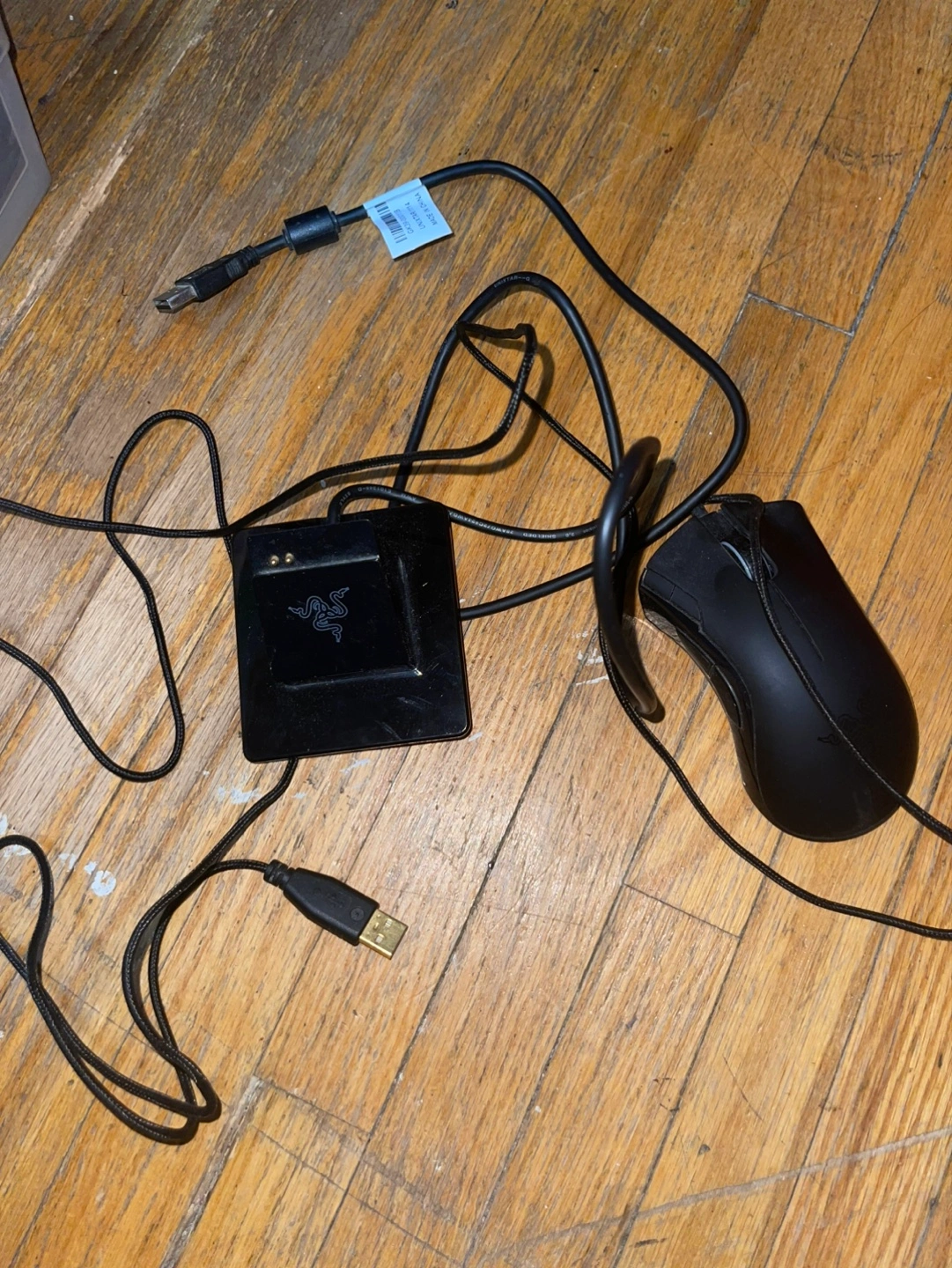 Razer Mamba wireless gaming mouse and charging dock. Includes USB cable.