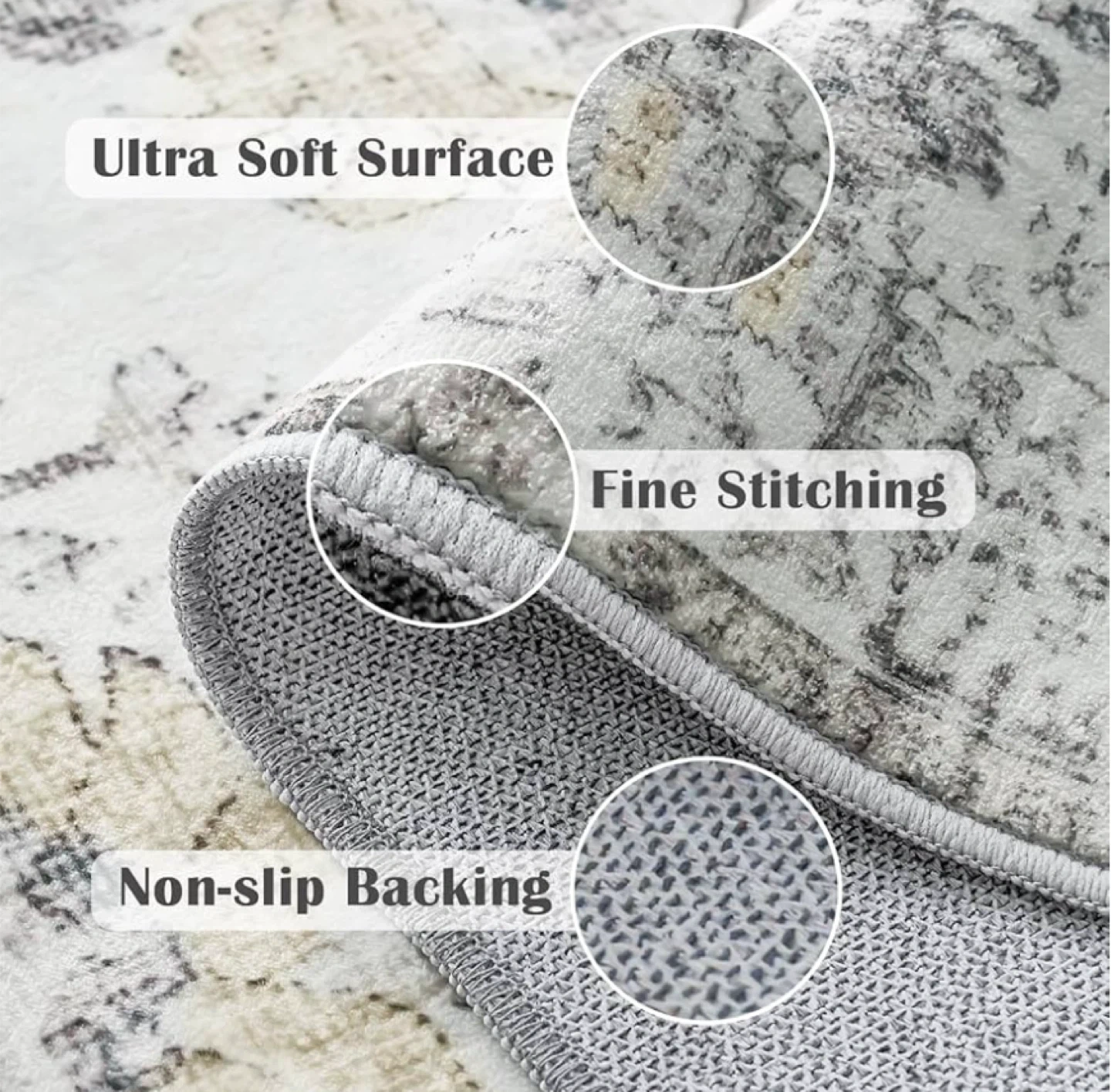 Superior Material: Our area rug with sturdy synthetic fibers for a designer look and soft surface. Non slip backing helps the rug stays in place well. Rug pad recommended for use on hard floor