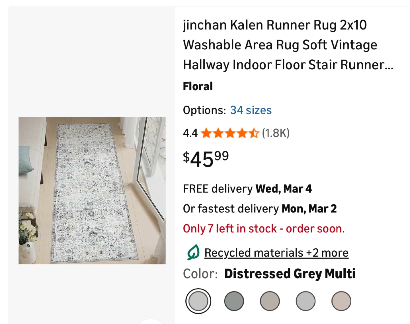 Running Rug 2x10” Soft,Vintage,Washable