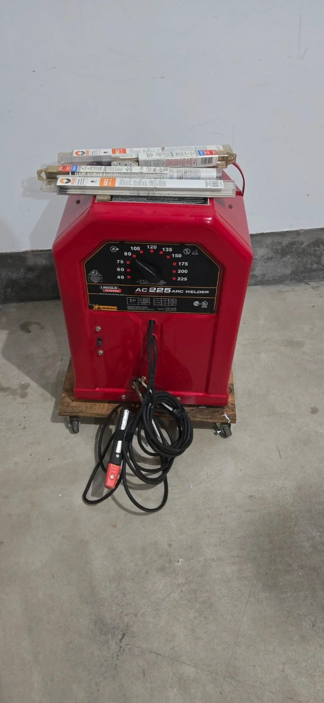 This is a Lincoln AC 225 Arc Welder. It includes welding cables and electrode holders. Comes with a variety of welding rods. Great for any shop!
