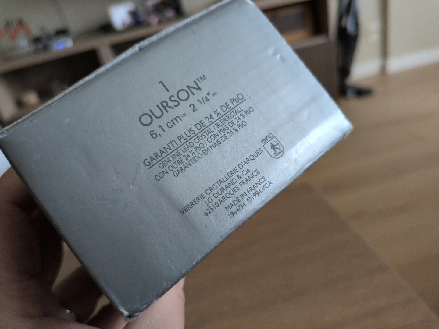 I believe there are other colours to this "Ourson" crystal bear figurine from Cristal d'Arques, so if you're looking to finish the set or would love to start your crystal bear collection, here's your chance! Made with genuine lead crystal containing 24% Pbo. Measures 6.1 cm. Made in France in 1994.