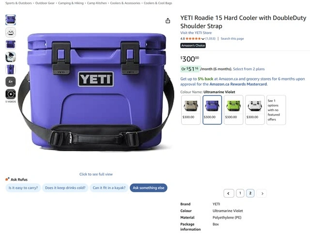 New condition. Complete, there are two scratches at the back of the lid, as shown in the photos. Pickup is near Kipling and Evans. Meet the most compact cooler in the YETI lineup. This small but mighty version of the classic Roadie Family still packs all your favorite essentials, cans, and wine bottles. Fits 22 cans (only) or 16 lbs of ice (only). Wine-friendly packing fits most standard wine bottles and two-liter soda bottles on their side. DoubleDuty strap designed for hands-free hauling or comfortable grip while carrying. LipGrip handles stay out of the way and make carrying your catch easy. BearFoot non-slip feet prevent sliding on the boat or in the backseat. Cash accepted. Cashless payment accepted.