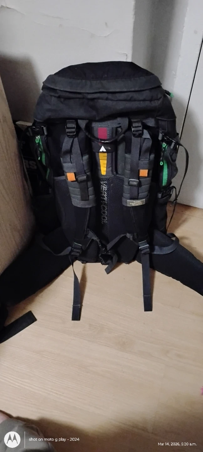 This is a The North Face Terra 60 backpack. It's black and green with multiple pockets and adjustable straps. Perfect for hiking or travel! Please take it off my hands