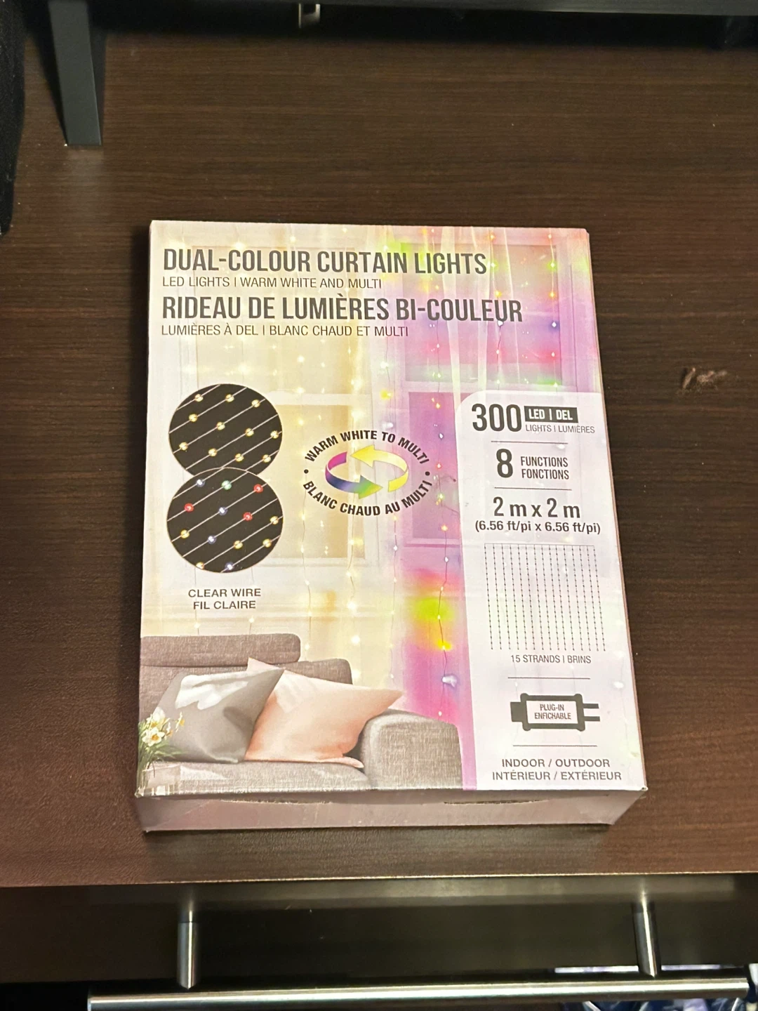 These dual-colour curtain lights offer warm white and multi-colour options. They have 8 functions and measure 2m x 2m with clear wire. Suitable for indoor or outdoor use.