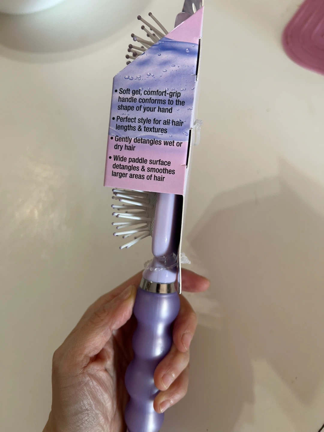 This Conair brush has a soft gel, comfort-grip handle. It's perfect for all hair lengths and textures and gently detangles wet or dry hair. The wide paddle surface smooths larger areas of hair.