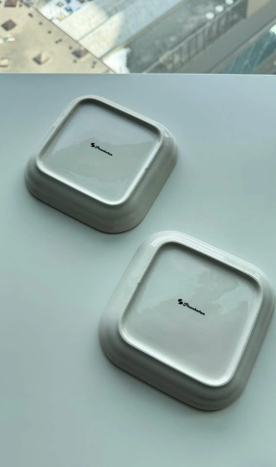 Festive ceramic plates by Paşabahçe featuring a Christmas tree design and red rim. Perfect for serving desserts, cookies, snacks, or appetizers during the holidays. Great for Christmas hosting, dessert tables, or seasonal table settings. Set includes 2 plates. Good condition. No chips, cracks, or damage to the pattern. Dimensions: 6 × 6 inches.