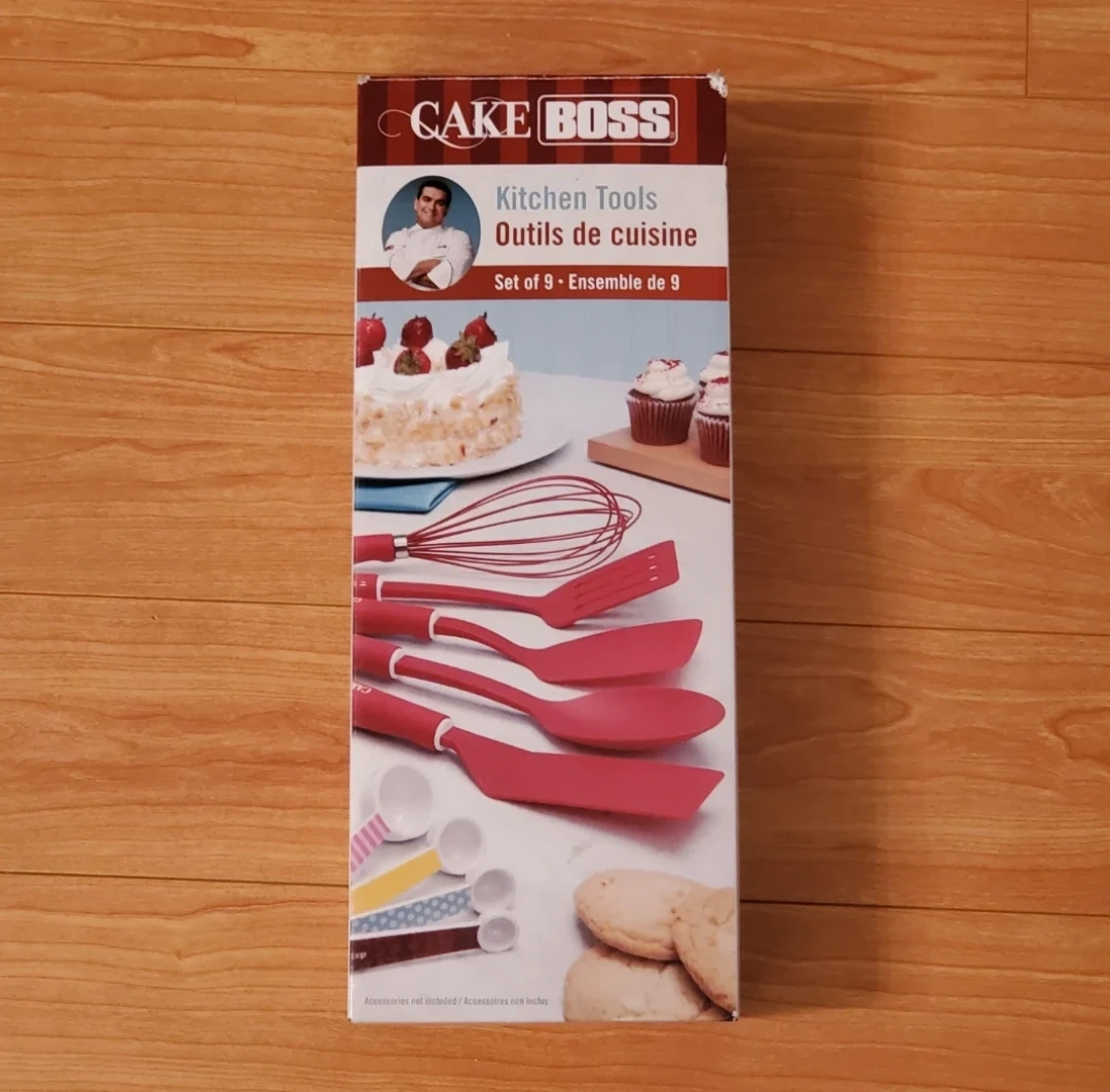 This CAKE BOSS 9 piece Kitchen tool set is brand new. Each item is still sealed in plastic inside the box.