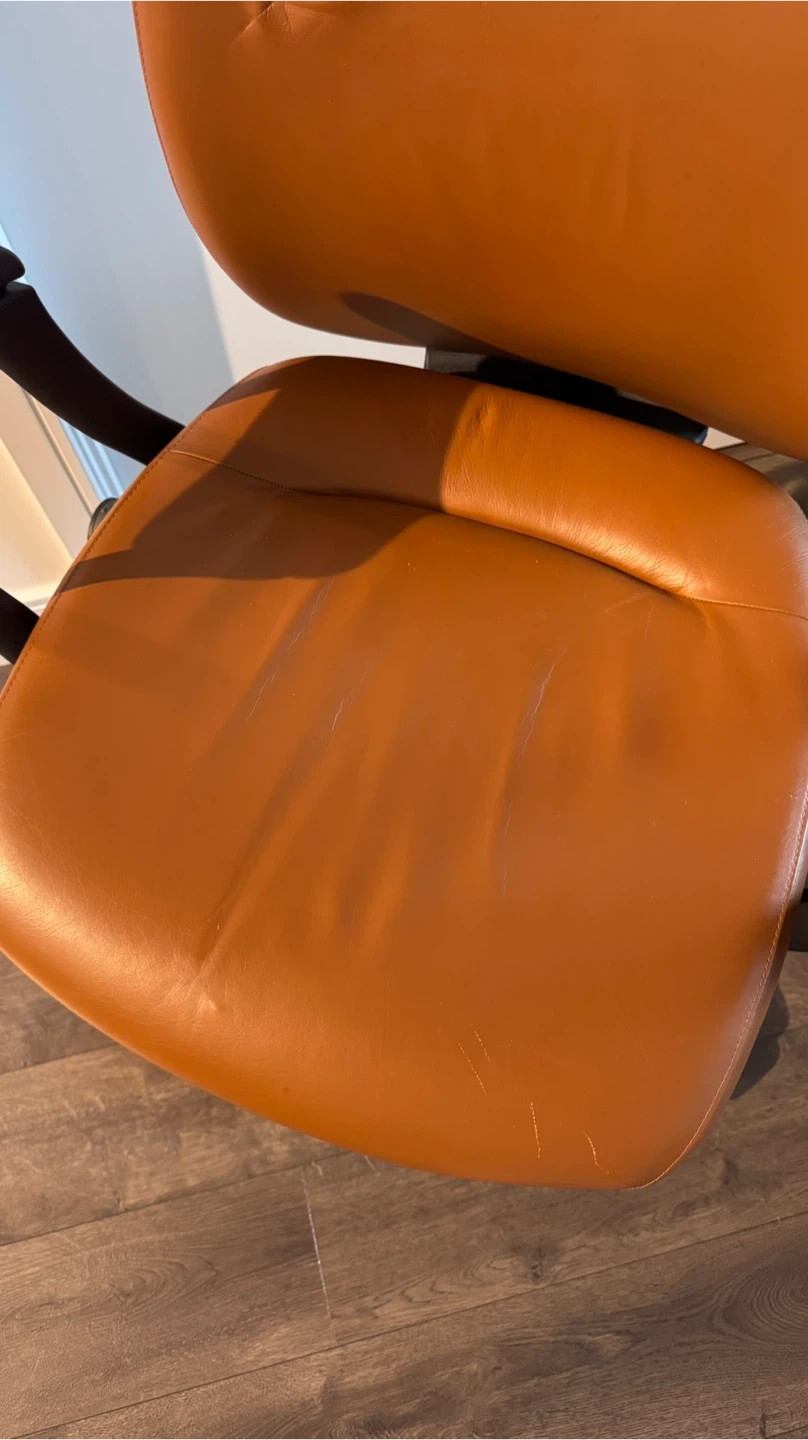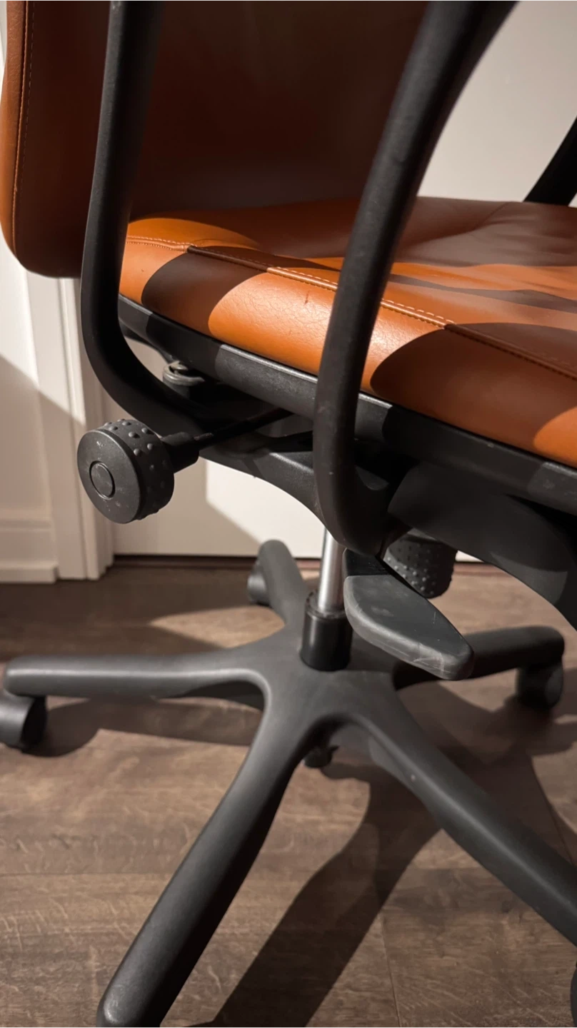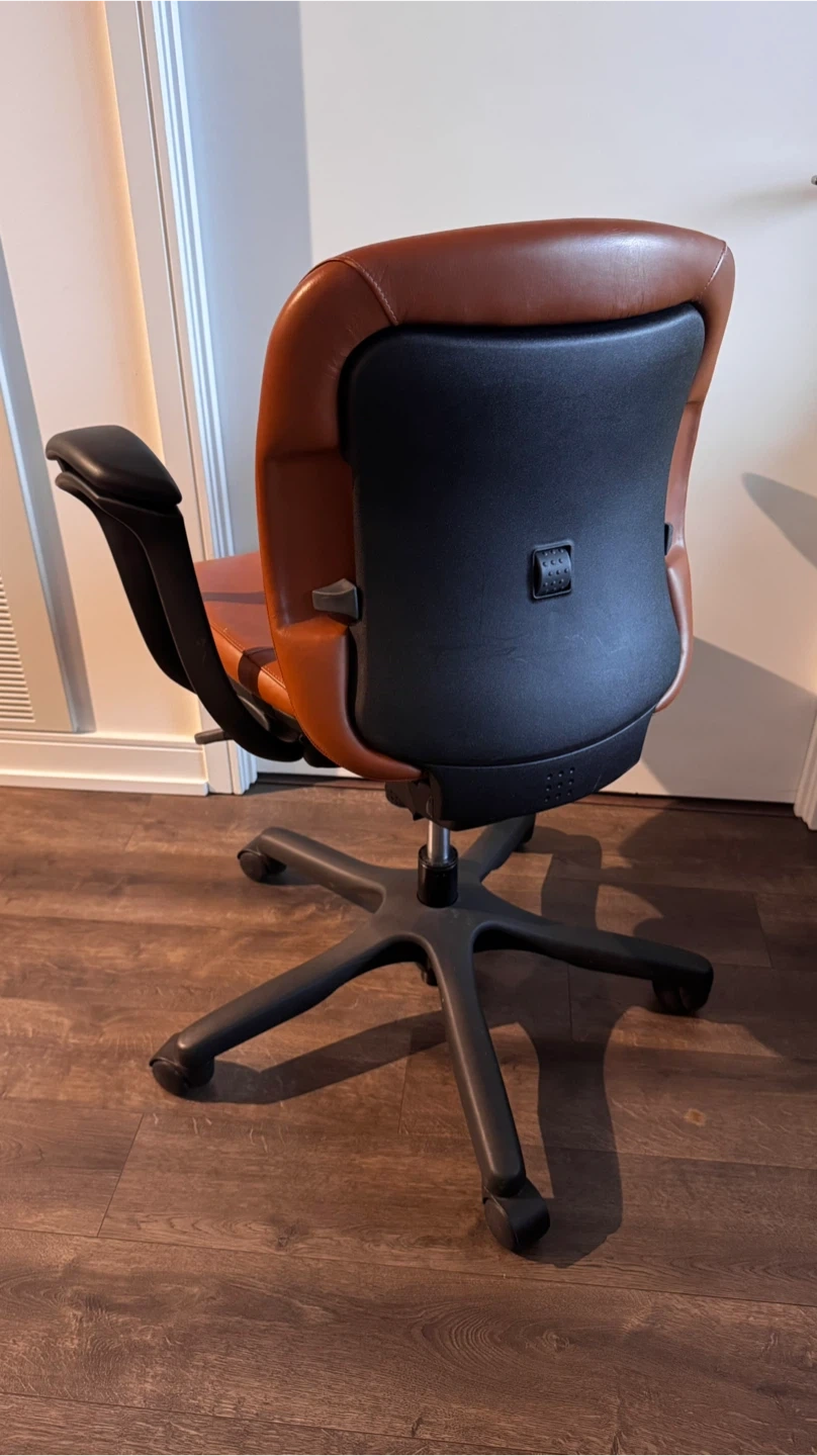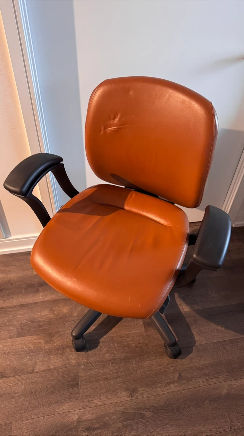 Selling a comfortable office chair in a warm caramel-brown finish.