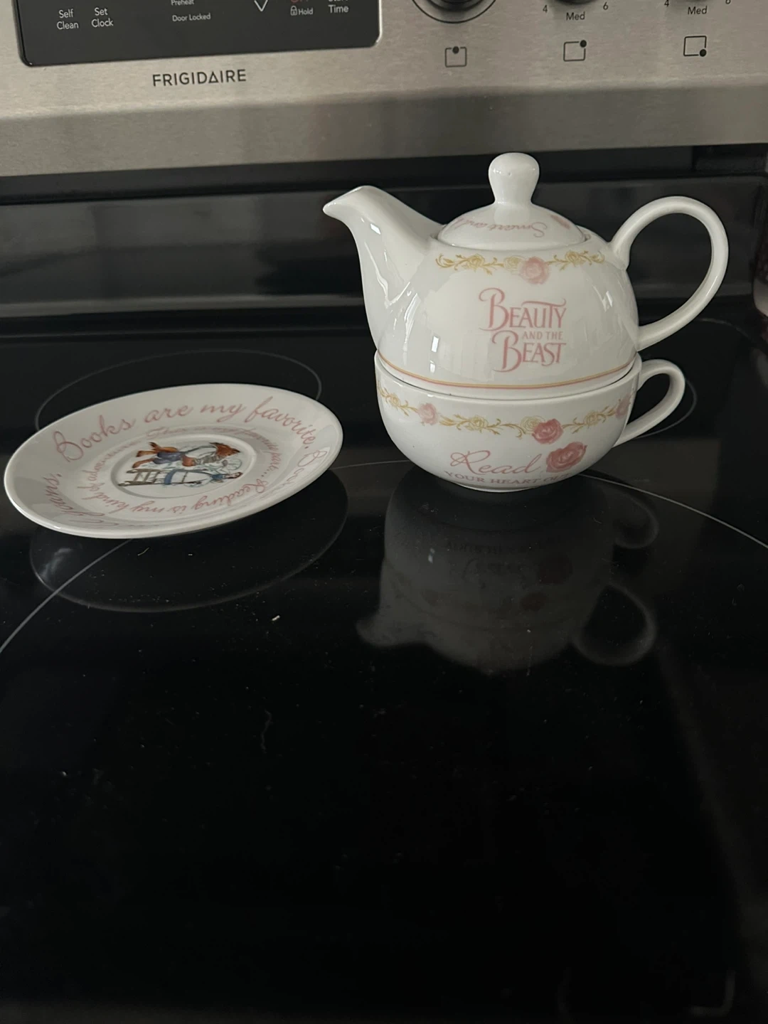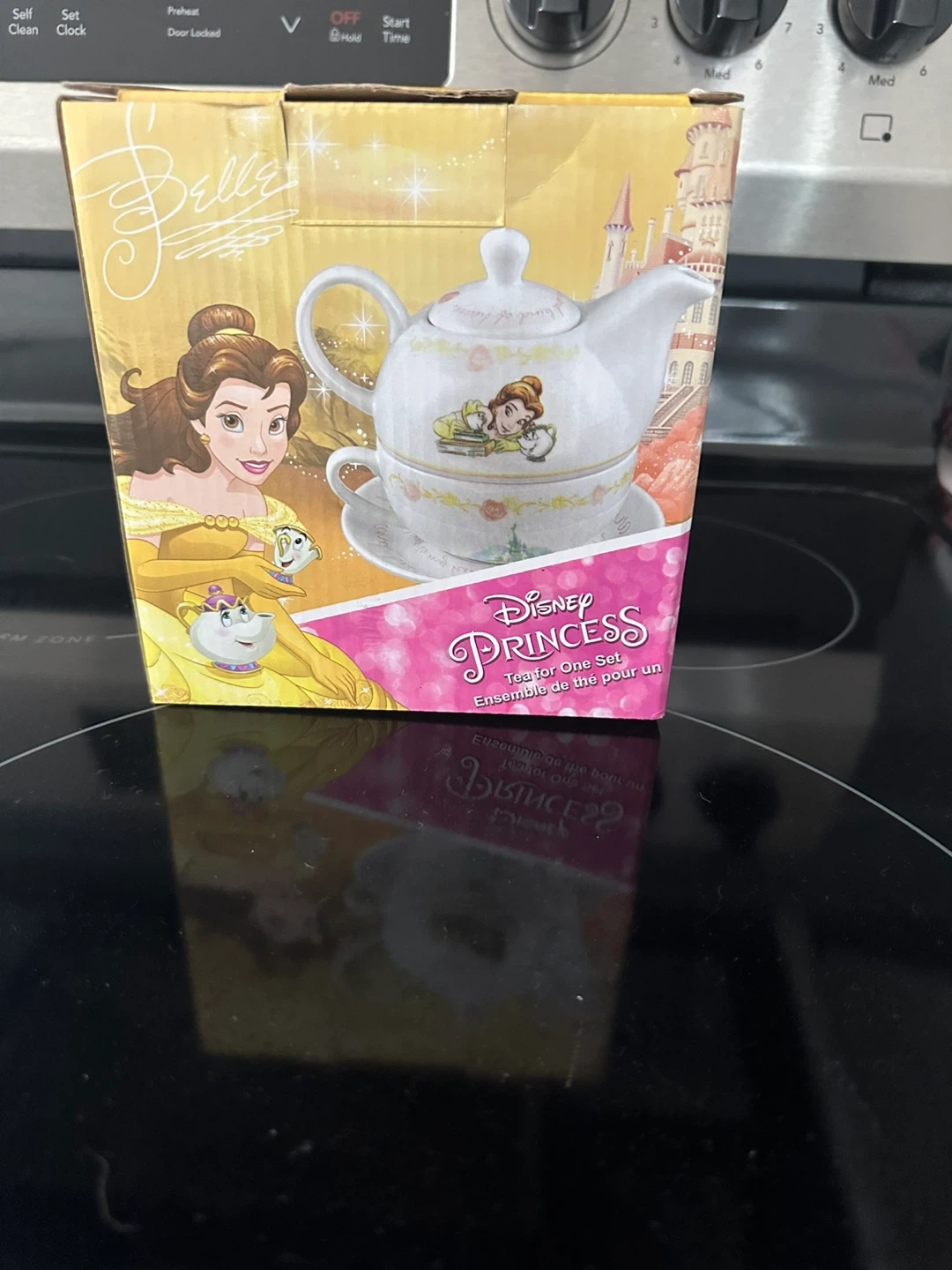 This is an adorable Ceramic Disney Princess tea set featuring Belle from Beauty and the Beast! It includes a teapot, cup, and saucer, all in excellent condition. Never used, hand wash only