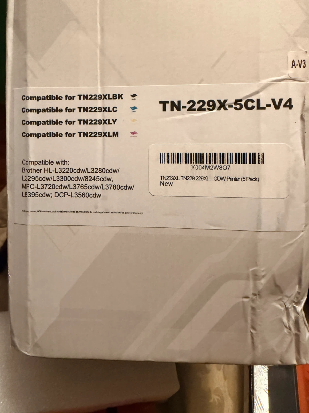 Selling a brand new, unopened set of 5 Brother TN-229X-5CL-V4 toner cartridges! This is a 5-pack, compatible with various Brother printer models including HL-L3220cdw, L3280cdw, L3295cdw, L3300cdw, 8245cdw, MFC-L3720cdw, L3760cdw, L3780cdw, L8395cdw, and DCP-L3560cdw
