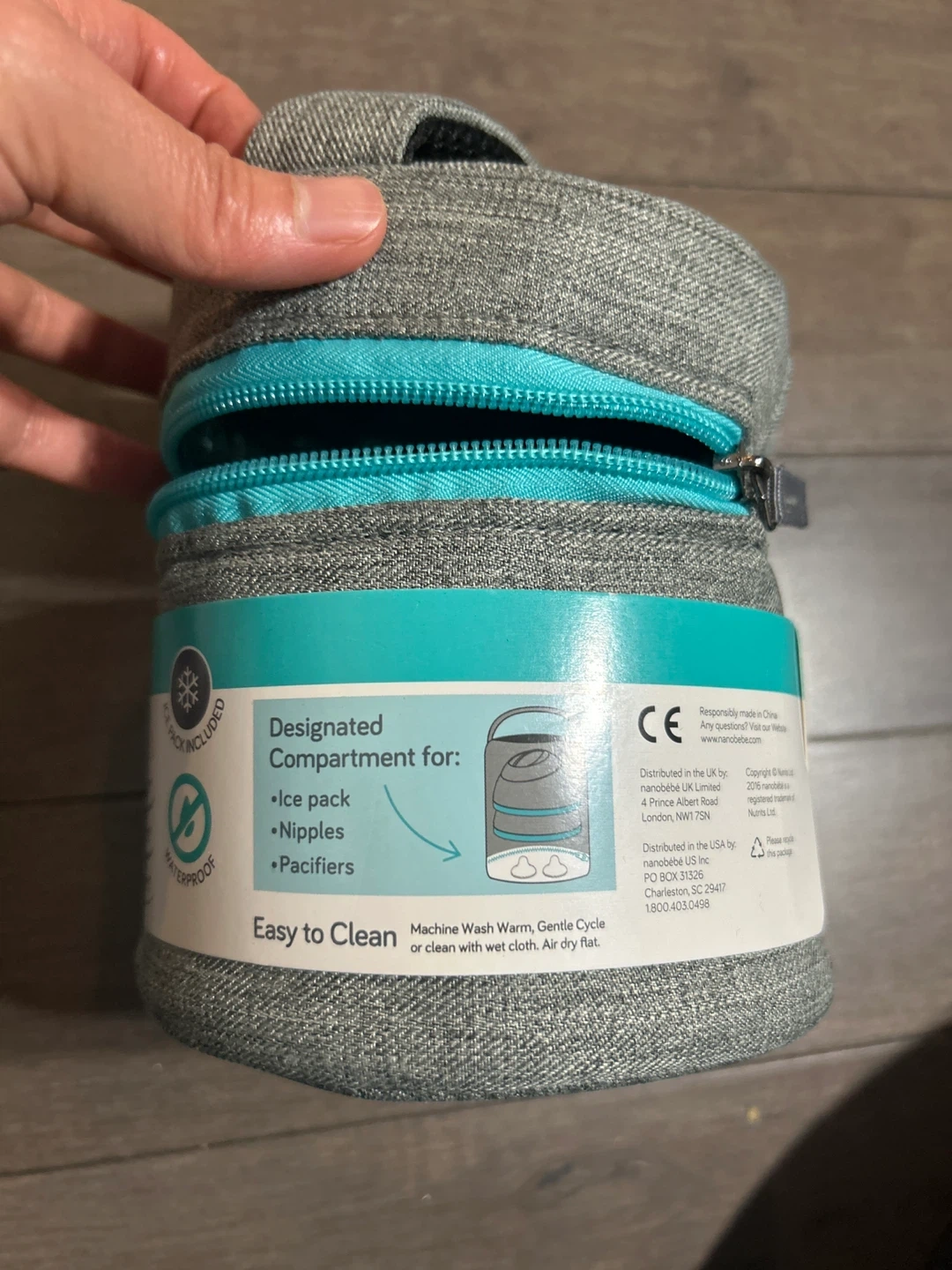 This Nanobébé bottle cooler & travel pack keeps bottles cool or warm. It's designated for ice packs, nipples, and pacifiers. Fits up to 3 Nanobébé bottles and includes an easy stroller attachment.
