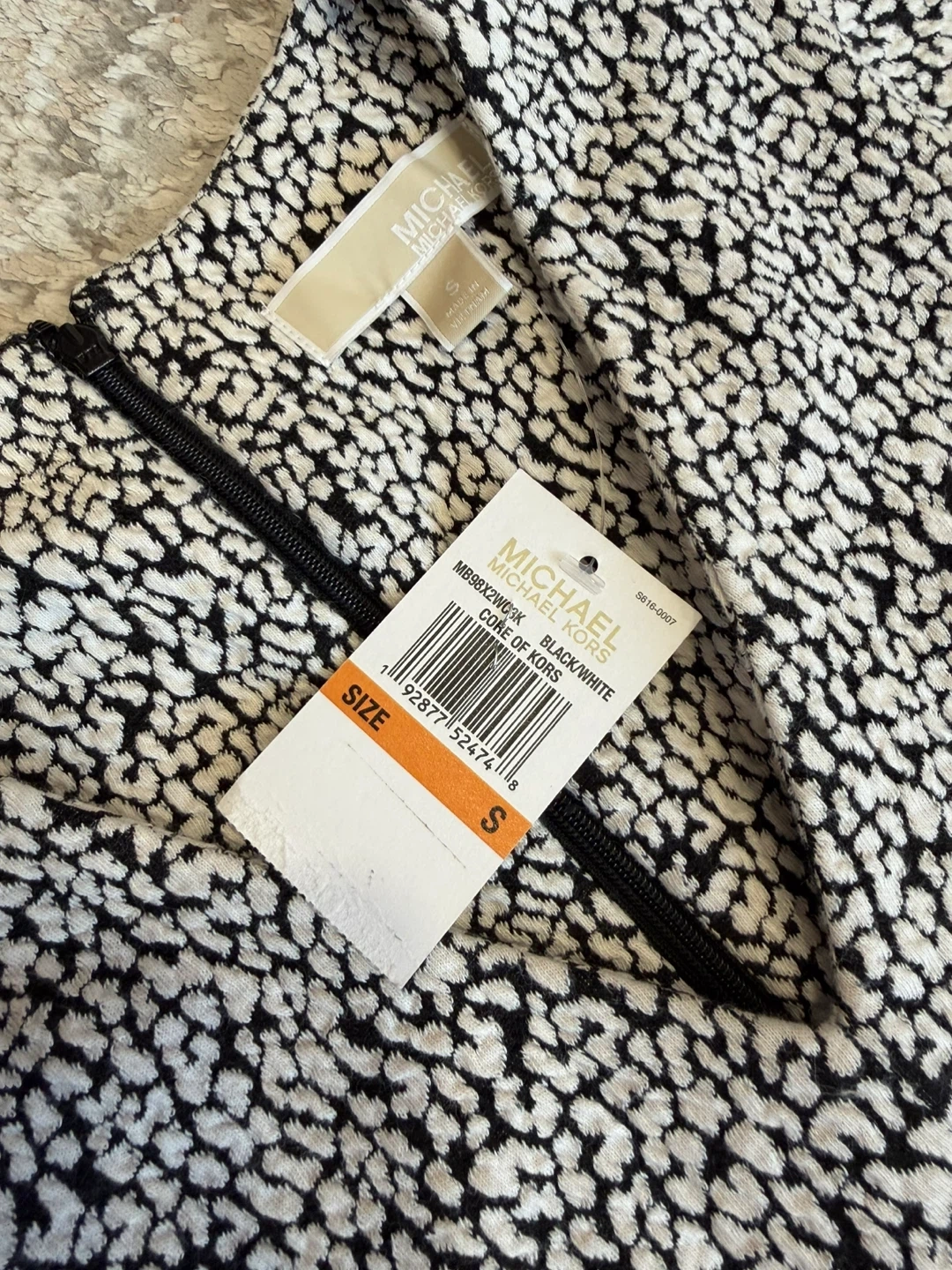 This is a Michael Kors dress in a black and white print. It's a size small and has a V-neck and short sleeves. Great for work or going out, new!
