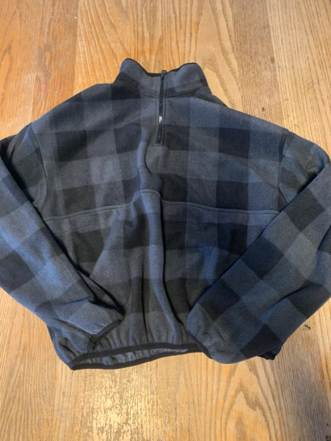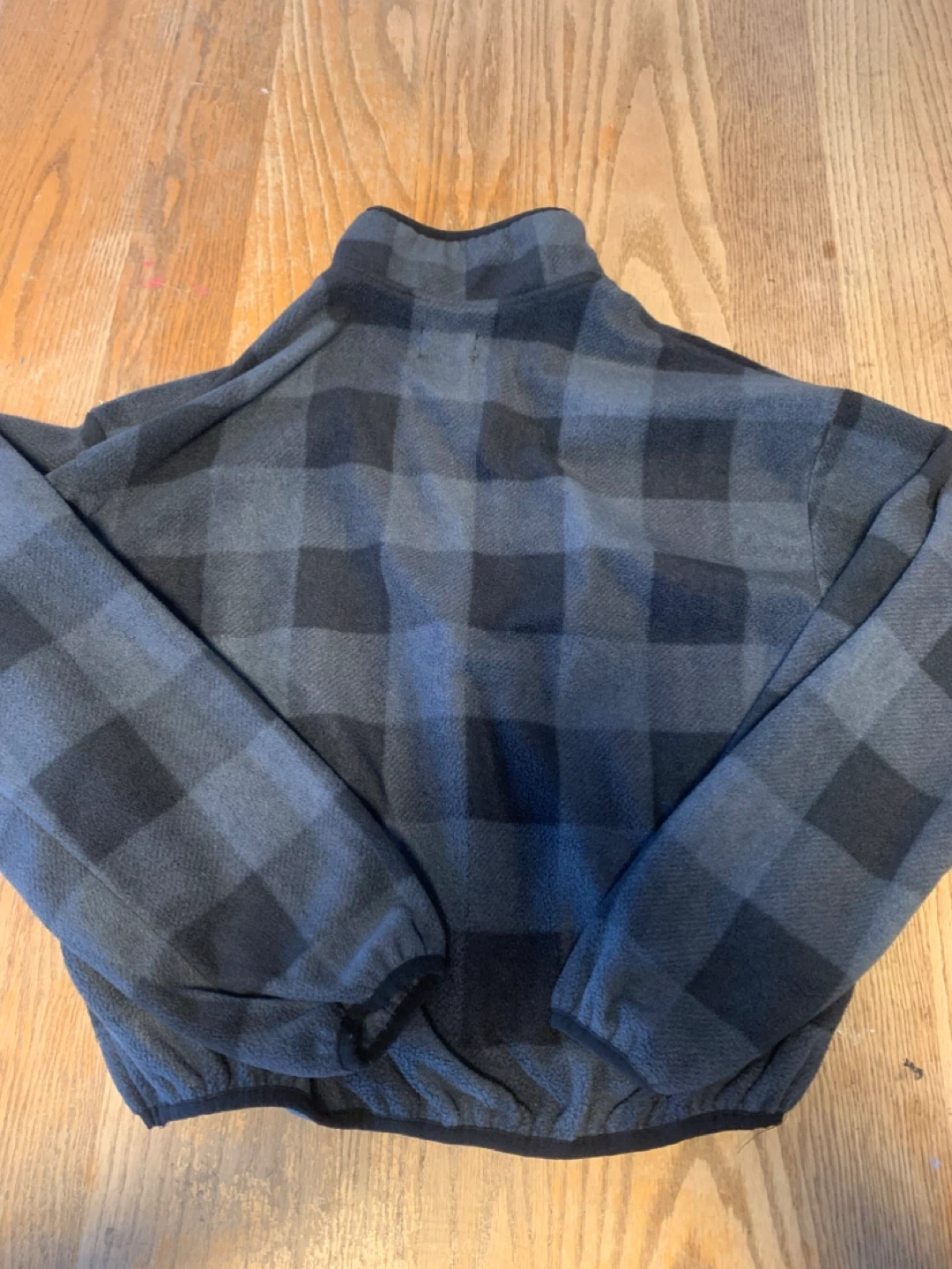 Barely worn, super soft, tightly cropped with elastic on waist and sleeves, zip up neck line.
