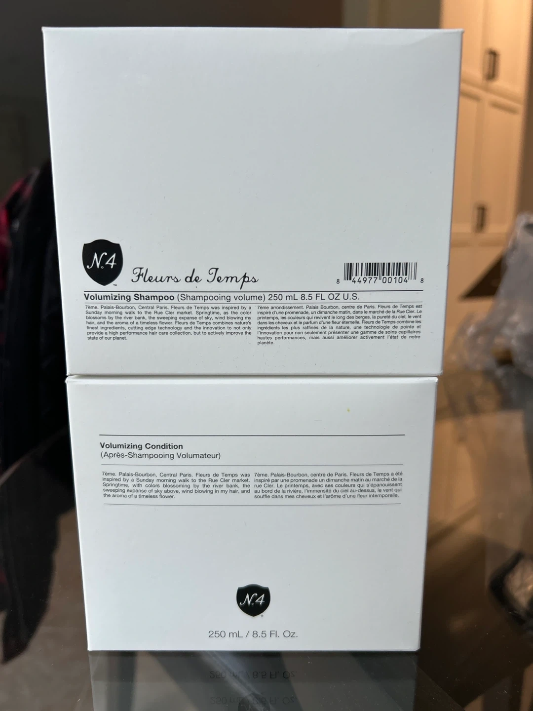 47Selling a set of N4 volumizing shampoo and conditioner. Each bottle contains 250ml / 8.5 fl oz. They are designed to provide full body and colour protection, and are sulfate & sodium chloride free the retail for over $40 each