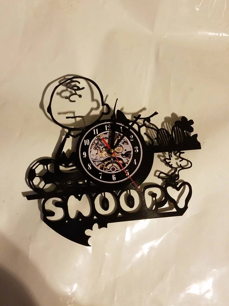 Check out this unique Snoopy and Charlie Brown wall clock! It's a fun decorative piece for any fan of the Peanuts gang. The clock features a cool design with Snoopy and Charlie Brown.