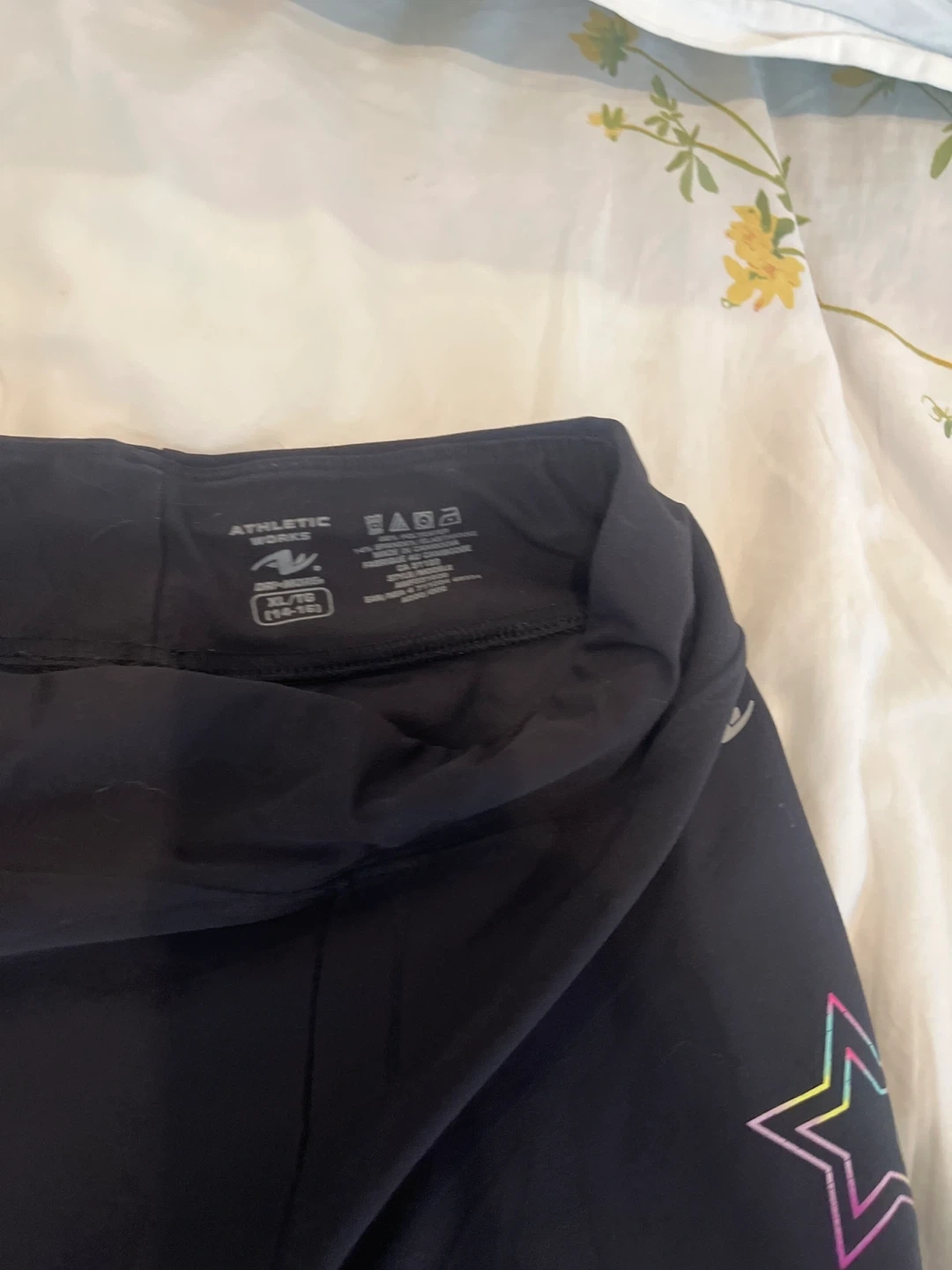 Selling a pair of Athletic Works leggings in size XL (16-18). They're black with a fun star design on the leg