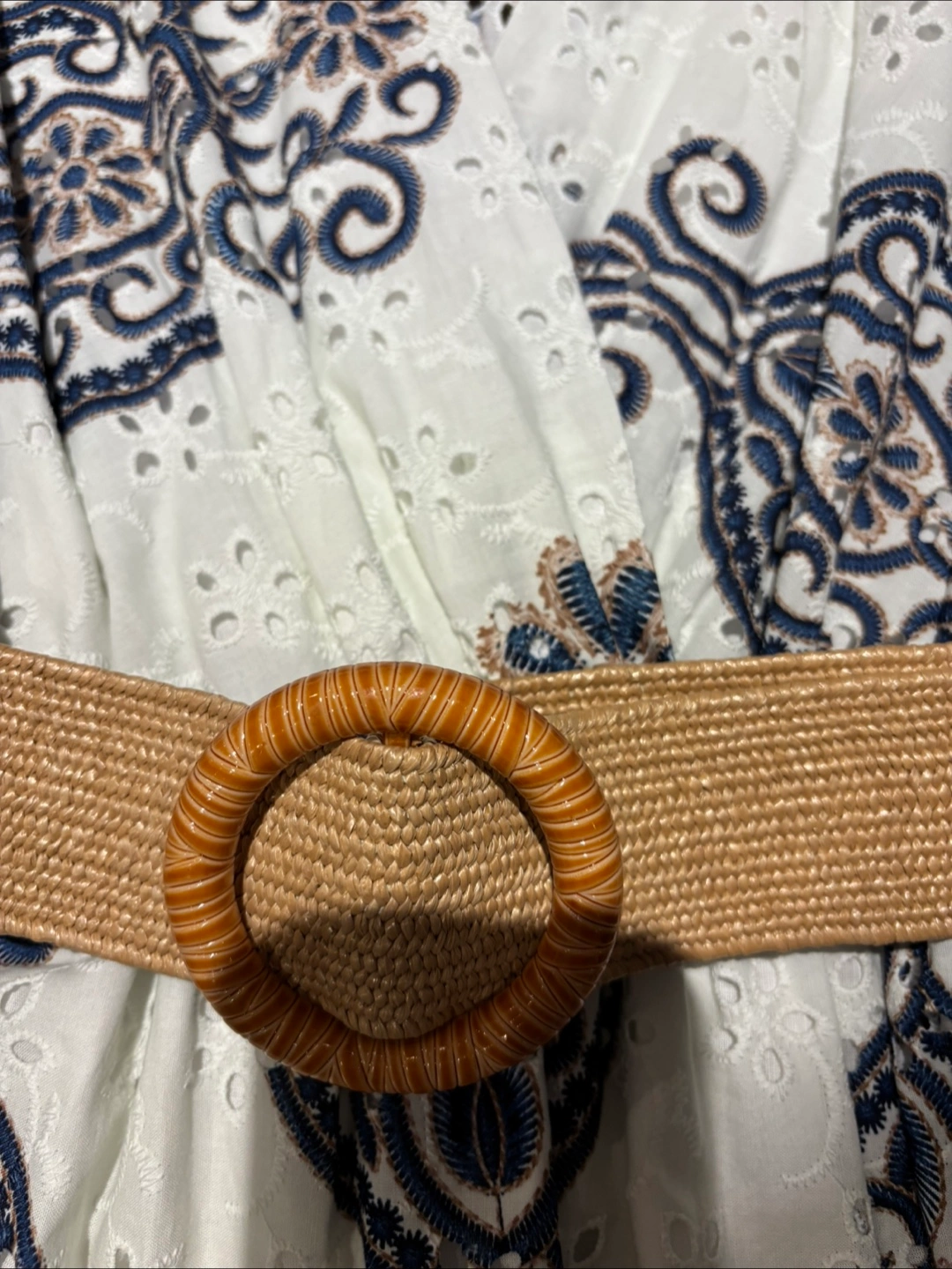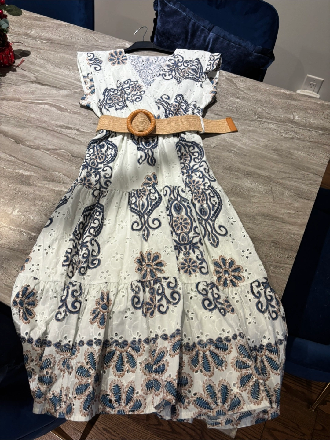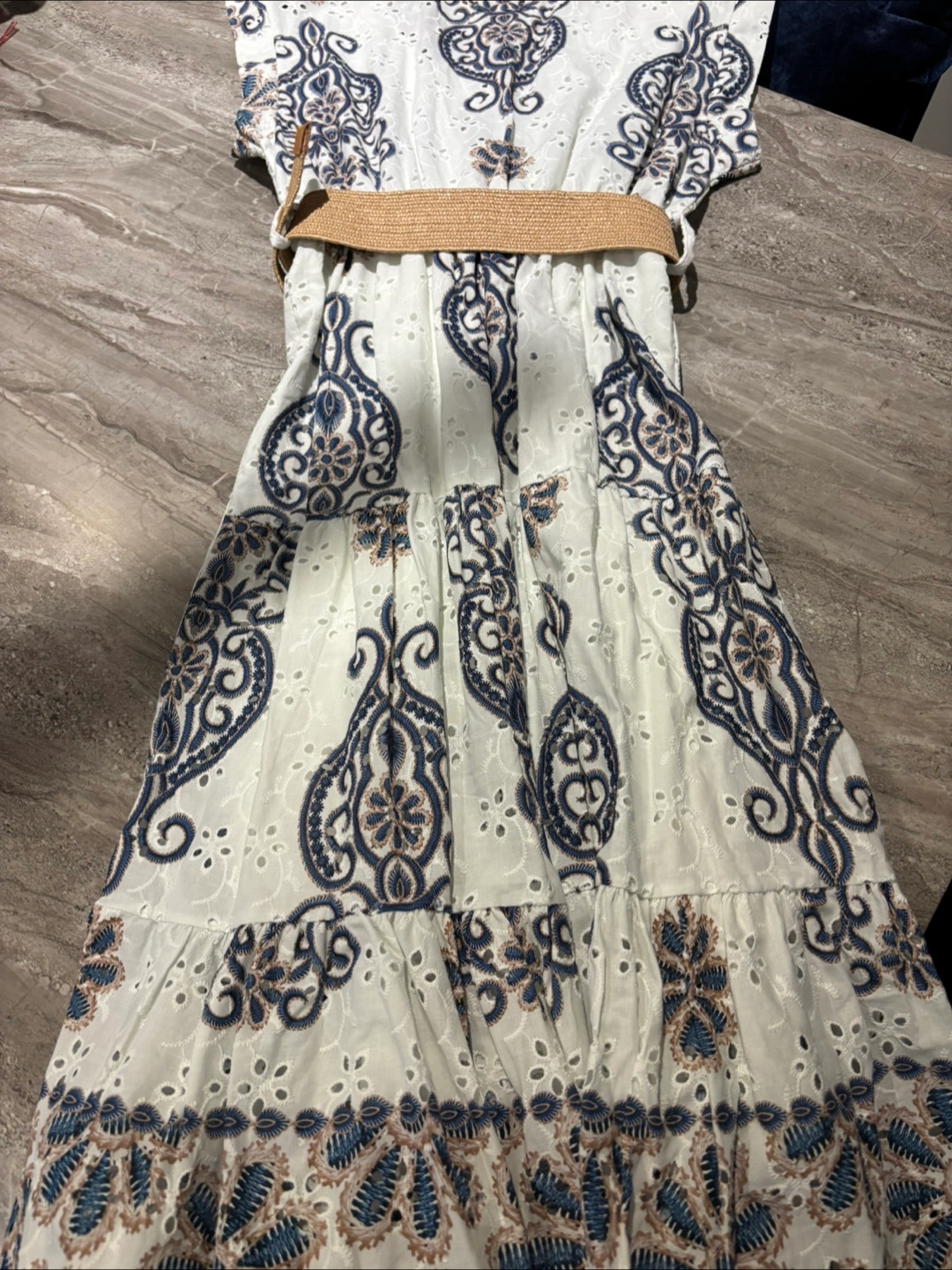 Made in Italy White & Blue Floral Dress with Belt