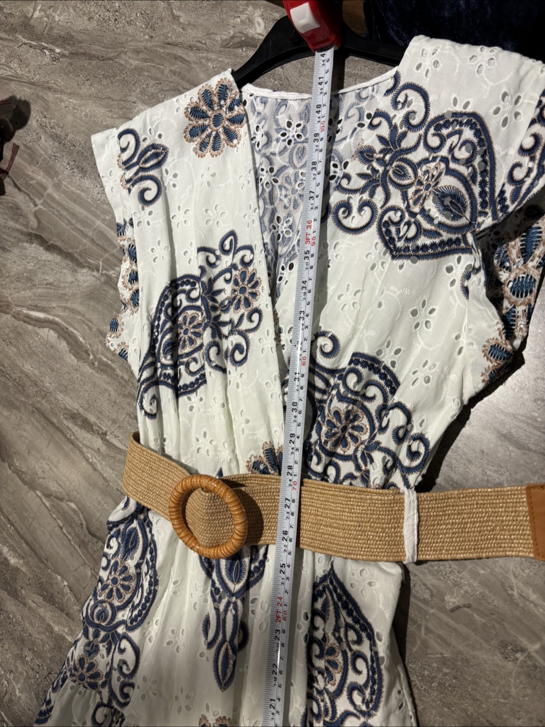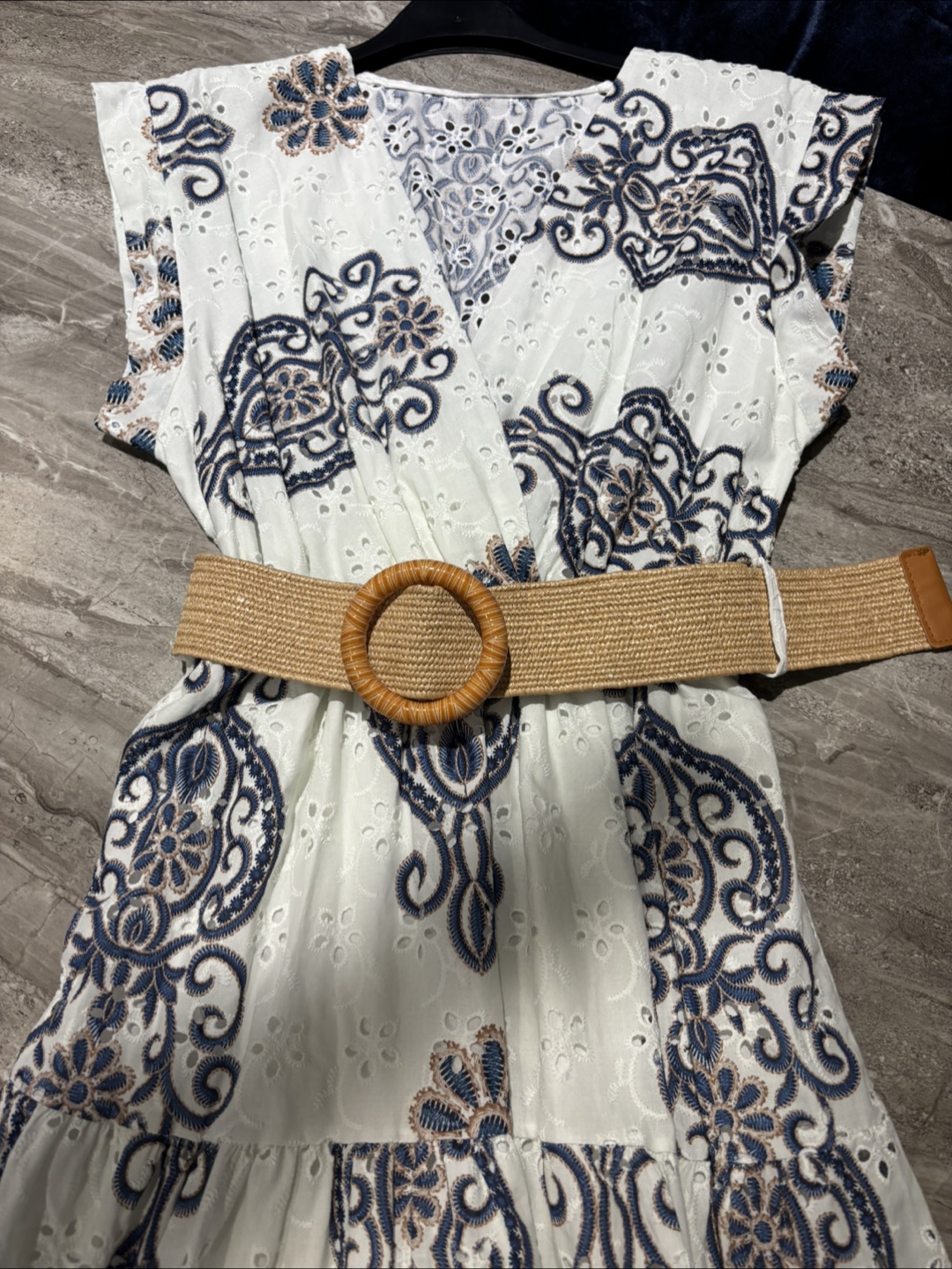 Made in Italy White & Blue Floral Dress with Belt