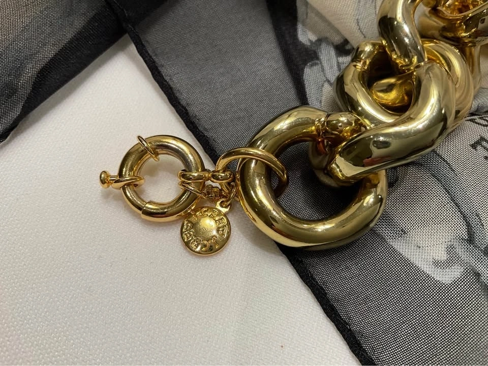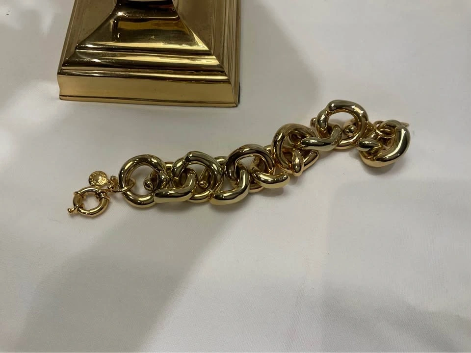 Chunky high polish bracelet with a lobster spring clasp. Loop to loop length is 8 1/2". From a smoke & pet free home. Cash only, pick up in Richmond Hill (Bathurst & King Rd).