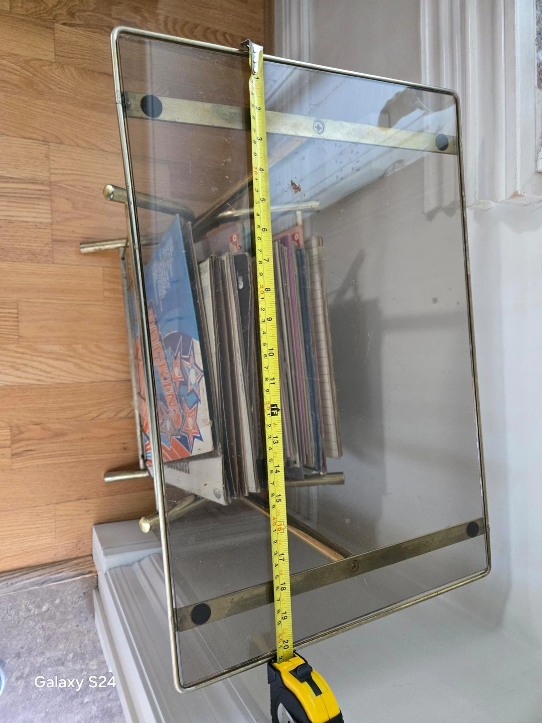MOVING SALES ~ Cash only/door pick up (Near PNE)- Selling a neat vintage side table with a magazine rack! It has a gold metal frame and a glass top. It's in good condition and would be a great addition to any living room or den (two Tables for $20)