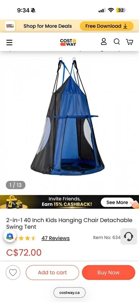 2-in-1 swing tent and hanging chair. Brand new, Costway product. New sells for over $70 plus tax. Price is firm. Pickup is Wellington Street S, Hamilton. Cash only!