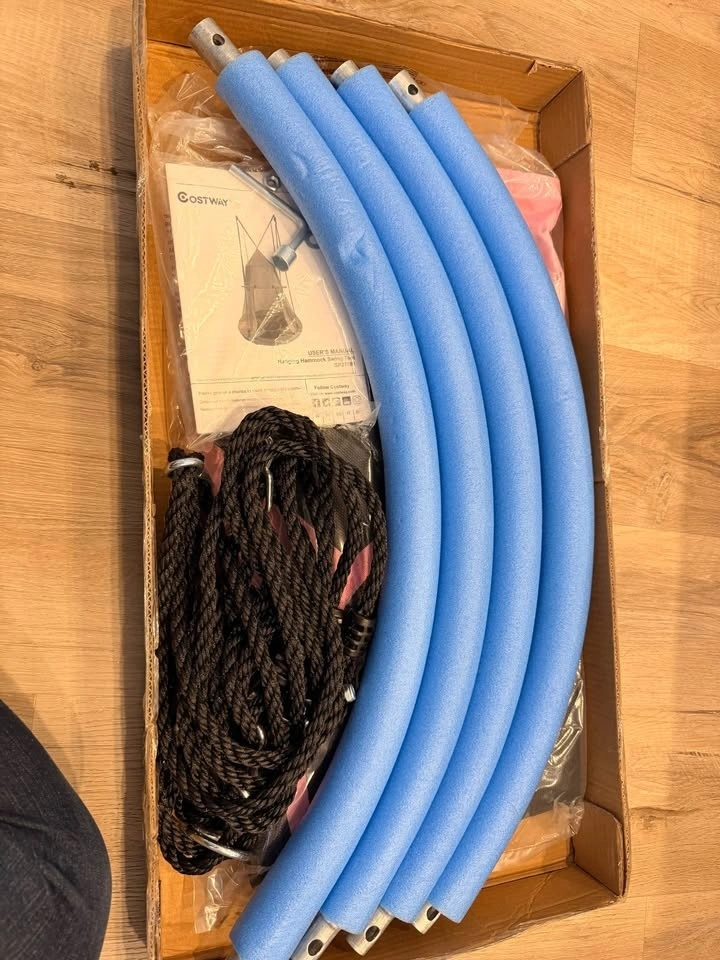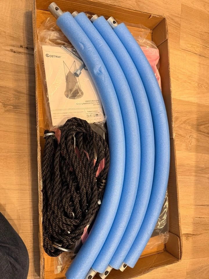 2-in-1 swing tent and hanging chair. Brand new, Costway product. New sells for over $70 plus tax. Price is firm. Pickup is Wellington Street S, Hamilton. Cash only!