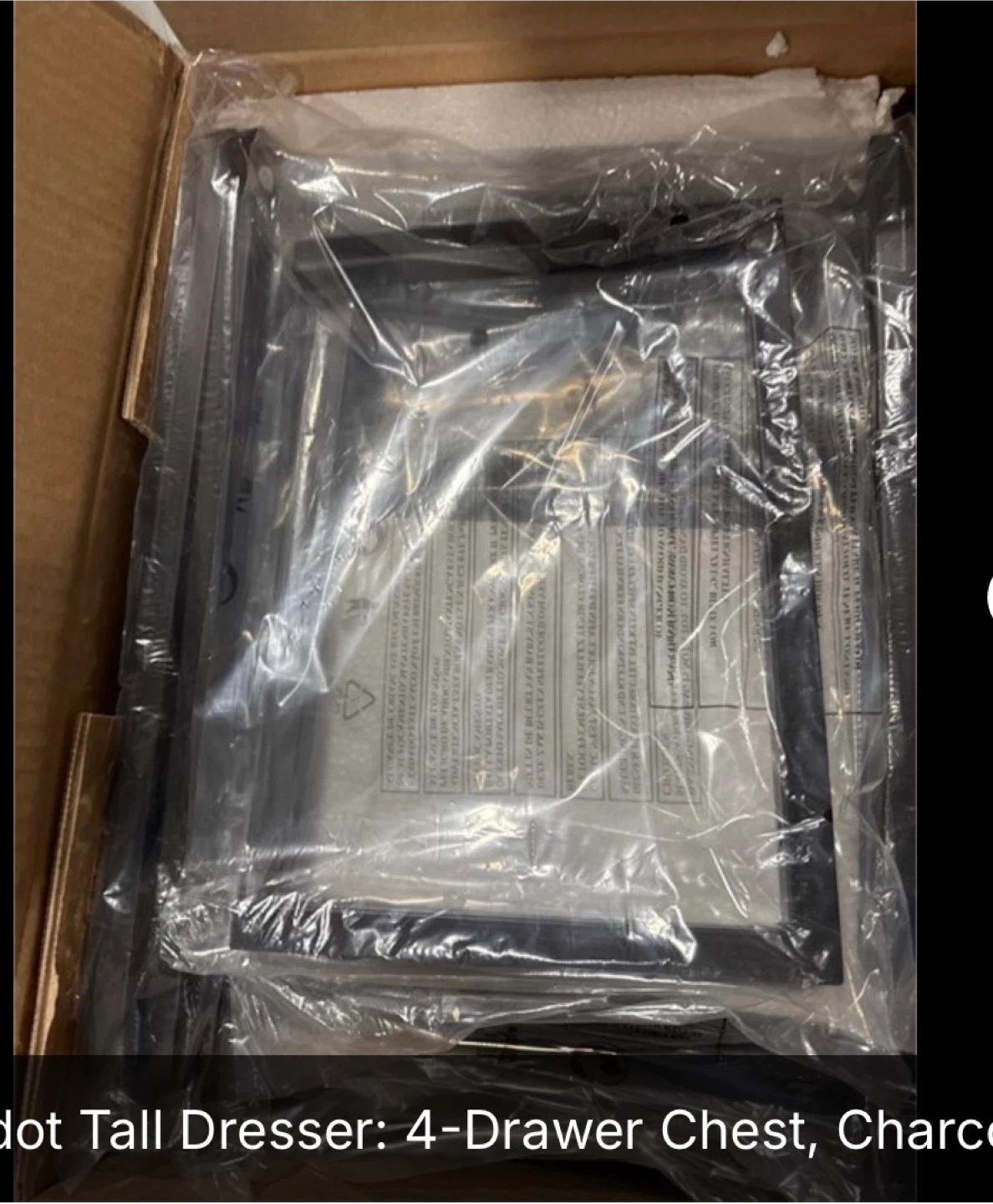 Selling a brand new MIND Reader 4-Drawer Chest in Charcoal! It's still in its original packaging, so you'll be the first to assemble it. Perfect for adding some extra storage to any room!