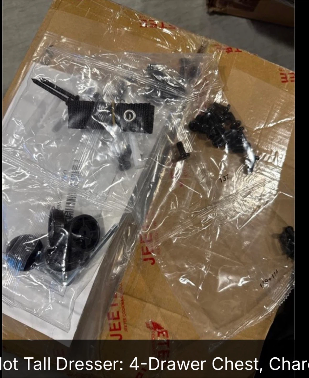 Selling a brand new MIND Reader 4-Drawer Chest in Charcoal! It's still in its original packaging, so you'll be the first to assemble it. Perfect for adding some extra storage to any room!