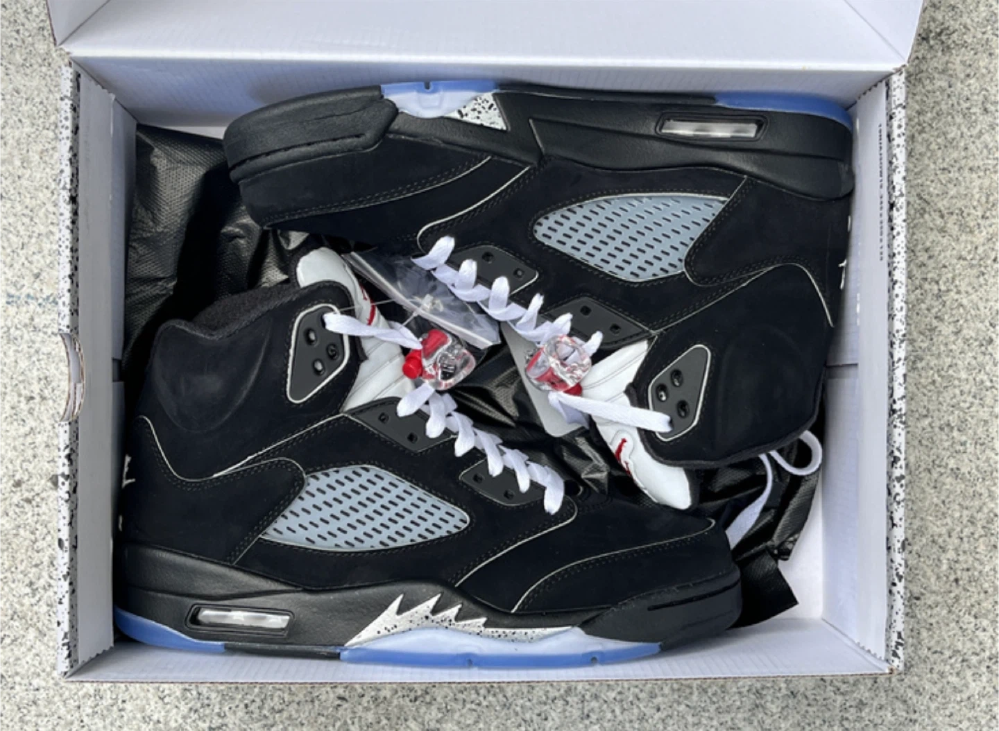 Selling a brand new pair of Air Jordan 5 metallic black Retro sneakers. They are in pristine condition and come with the original box. These classic Jordans are a must-have for any sneakerhead!