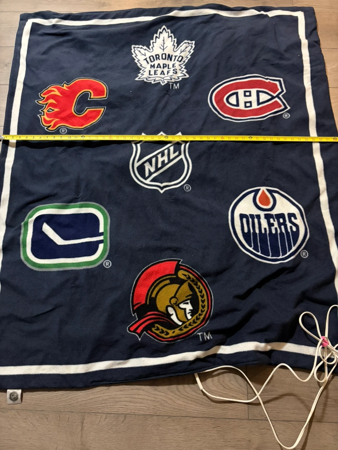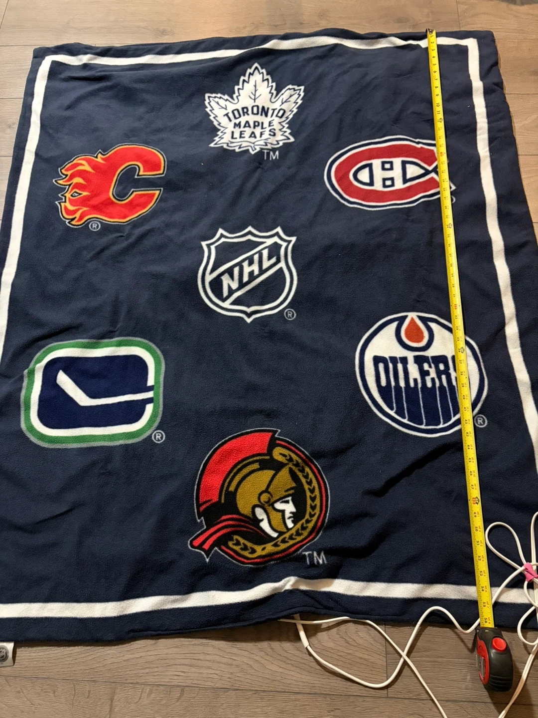 Keep cozy with this Sunbeam heated blanket featuring NHL team logos! It has high, medium, and low settings, plus an auto-off function for safety. Perfect for any hockey fan!