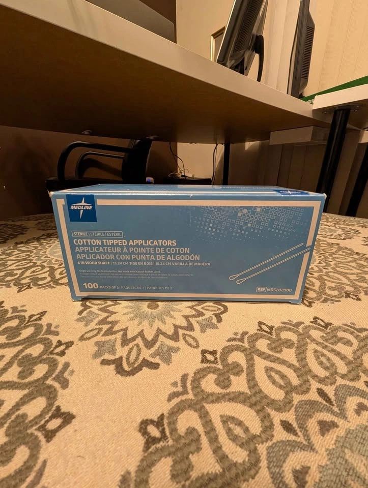 I have a bulk box of Medline Sterile Cotton Tipped Applicators. These are 6-inch wood shafts with high-quality cotton tips, used by professionals for wound care, medication application, and precision cleaning. This box has been opened, and while it's virtually full, a few applicators might be missing. Priced accordingly for a quick sale.