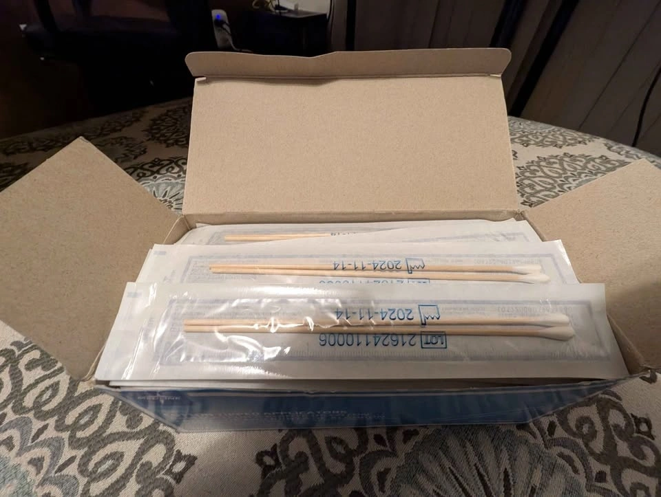 I have a bulk box of Medline Sterile Cotton Tipped Applicators. These are 6-inch wood shafts with high-quality cotton tips, used by professionals for wound care, medication application, and precision cleaning. This box has been opened, and while it's virtually full, a few applicators might be missing. Priced accordingly for a quick sale.