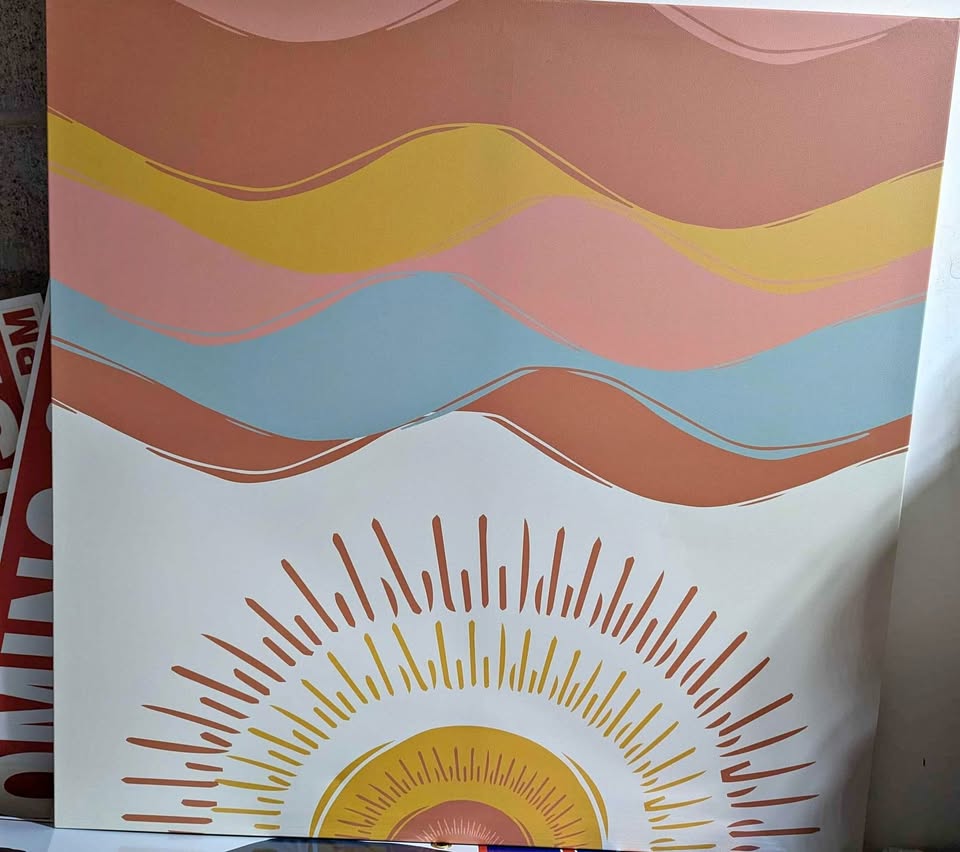 Size 30"x 30". Very elegant Rising Sun canvas painting from Homesense. Bought as a gift but never able to deliver. Paid $45 plus tax. Pick up in Brampton.